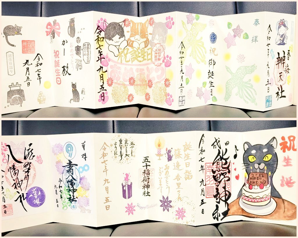 そして #誕生日御朱印 の数々‼️ 嬉しすぎる😍 ビックリしたのが【熊野神社⛩️様】の #御朱印 まろ眉くりんℂʰäⁿ🐈⬛ ͗ ͗💕 世界に1つだけ〰️🤩🤩🤩 そして ワガママ言ってお願いした 五十様の黒猫ㄘゃん御朱印💗 アクアブルーさꩢ@KONOSUBA_BLUE いつも有難う御座います🙏 #素敵便 #カラフル御朱印 pic.x.com/zLn8gh8kZK