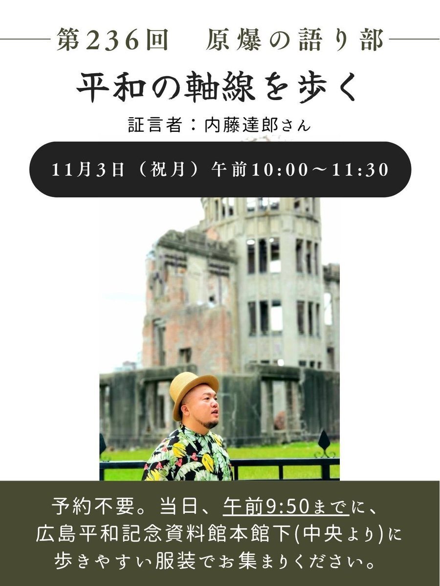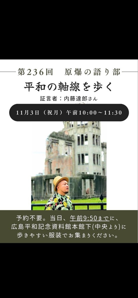 今月の原爆の語り部は、 11月3日(祝・月)に平和公園のフィールドワークを行います。 ご参加お待ちしてます😊 #原爆の語り部 #冨恵洋次郎 #HIPPY