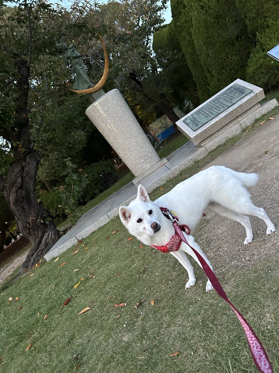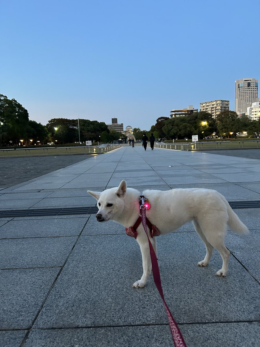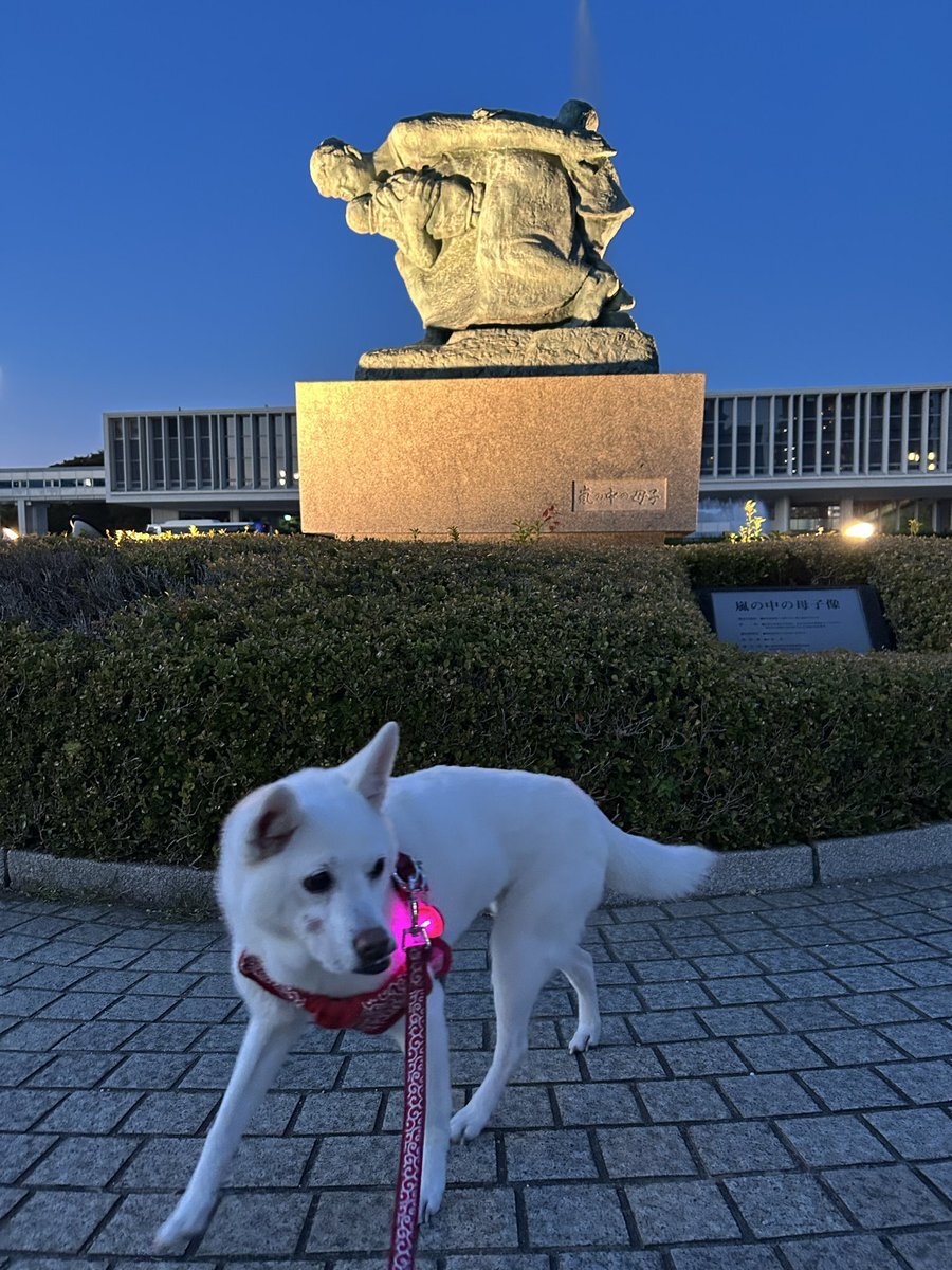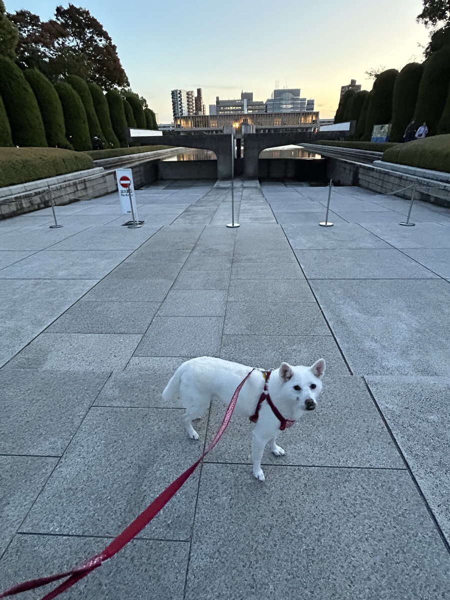 返信先:@H_sami_k_gura今日はお会いできて 楽しかったです ありがとうございました🙏 今日の夕暮れ時に 愛犬さくら🐶と 平和記念公園を改めて歩きました 復習しました✏️📖 #語り部の会