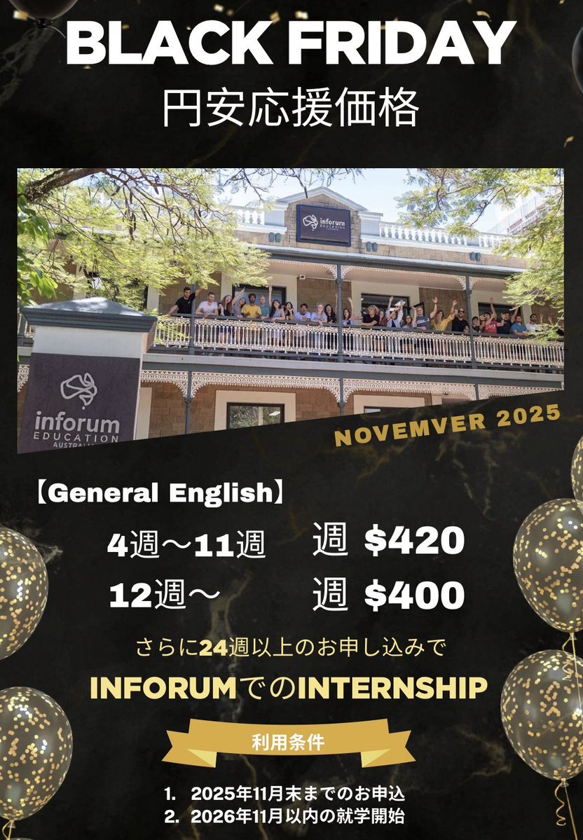 Happy Black Friday🎉 ゴールドコースト「インフォーラム・エデュケーション」最新キャンペーン発表!! 先月までのキャンペーンから変わり、短期留学の方でもお得な内容に😳 #オーストラリア #クイーンズランド #ゴールドコースト #語学学校 #英語 #留学 #ワーキングホリデー pic.x.com/trSz0s5cNe