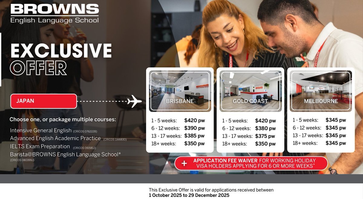 ブラウンズ10月からの最新キャンペーン発表!! 先月までのキャンペーンに比べてメルボルンキャンパスが圧倒的に安くなってる👀 これは超お得では🉐 #オーストラリア #ブリスベン #メルボルン #ゴールドコースト #留学 #ワーホリ #語学学校 #英語 pic.x.com/yGI2T2agIX