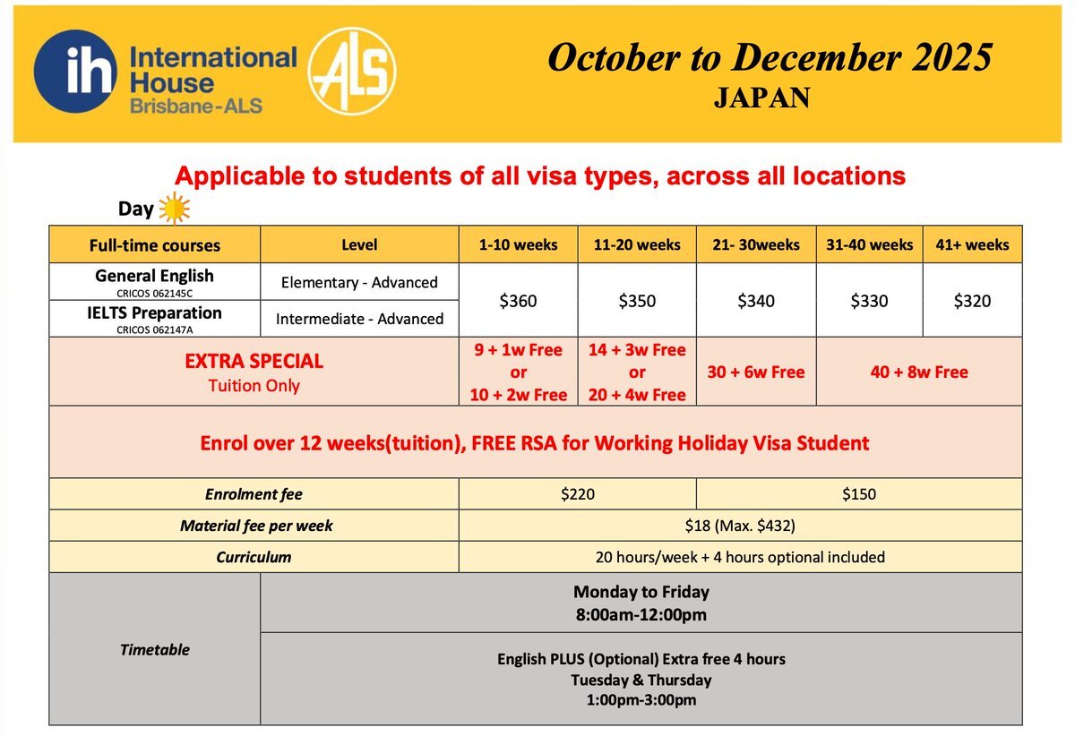 IH Brisbane最新キャンペーン公開!! ブリスベンで意外と知られていない穴場校🙌🏽 日本人比率やカリキュラム・サポートも重視したい方におすすめ! 長く通うほど授業料がお得に🉐 #オーストラリア #クイーンズランド #ブリスベン #留学 #語学留学 #ワーホリ #語学学校 pic.x.com/bVWllTULRS