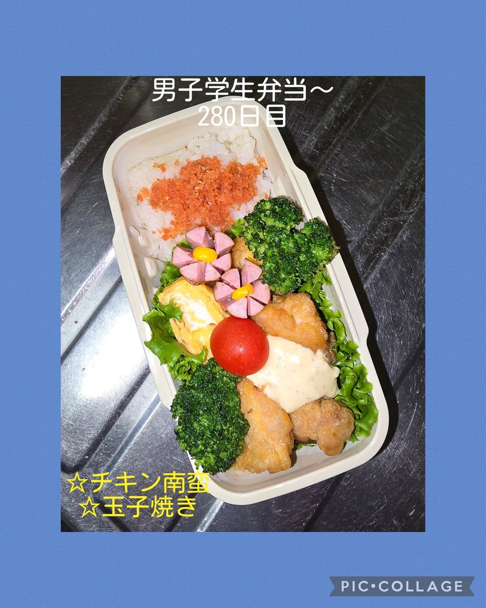 本日息子は家庭科で「親子丼&サラダ」を作るので、小さめ弁当✋ 3、4時間目に食べるのに…お弁当は要るらしい😅 #男子学生弁当 #今日のお弁当 #お弁当記録 #高校生 #調理実習 #親子丼    #チキン南蛮 #がんばろう pic.x.com/oO0cbEPNxe
