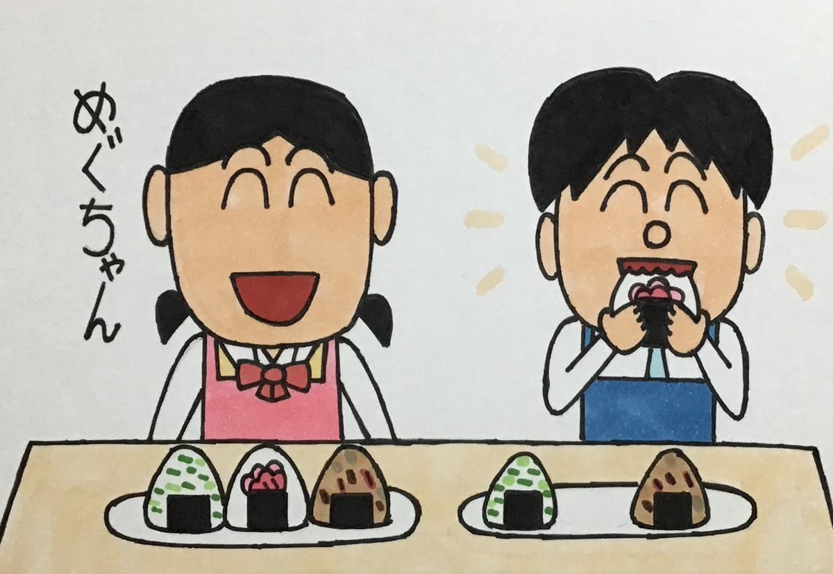 #ヨシキくん」です。調理実習でヨシキくんとめぐちゃんがおにぎりを作りました(美味しそう)。 #OnigiriAction #高校生 #調理実習 #おにぎり #わかめ # #炊き込みご飯 #イラスト pic.x.com/AtlGx1q39V