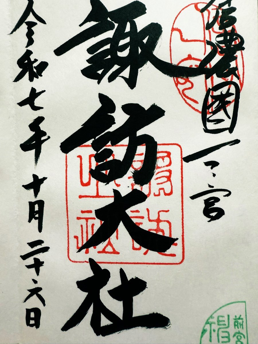 #諏訪大社上社前宮 長野県諏訪市 諏訪大社参拝へ 長野県の諏訪湖を囲むように 上社前宮 本宮 下社春宮 秋宮 四社からなる神社 創建は古く、古事記の国譲り 神話にまでさかのぼり 最も古い神社の一つ 本宮、春宮、秋宮は 本殿を持たず、 自然そのものが御神体 直書き拝受 #御朱印巡り pic.x.com/4wFbEqgSTa