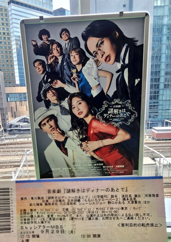 急いで向かった #謎解きはディナーのあとで 小説、ドラマ、映画、アニメ、好き過ぎて全て攻略済みw ドラマのイメージ(櫻井翔)が強すぎて違和感感じるかと思ったが全く遜色なく見れて大満足✨ ただ…一般売り切りをギリで買えたチケットだったので2階席w いや、ドームとかに比べりゃ全然近いんよ?w pic.x.com/t2yK8LSiuD