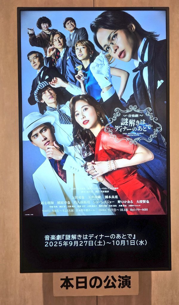 【謎ディ思い出1】 せっかく全公演観たので忘れても思い出せるように自分の記録もかねてポスト。 ちなみに私は国内では四季や帝劇、海外では思い立った時に1人でぶらっとブロードウェイ🇺🇸やウエストエンド🇬🇧に観に行くミュージカル好きです。 youtu.be/IAJZiv6g8ek?si… #謎解きはディナーのあとで