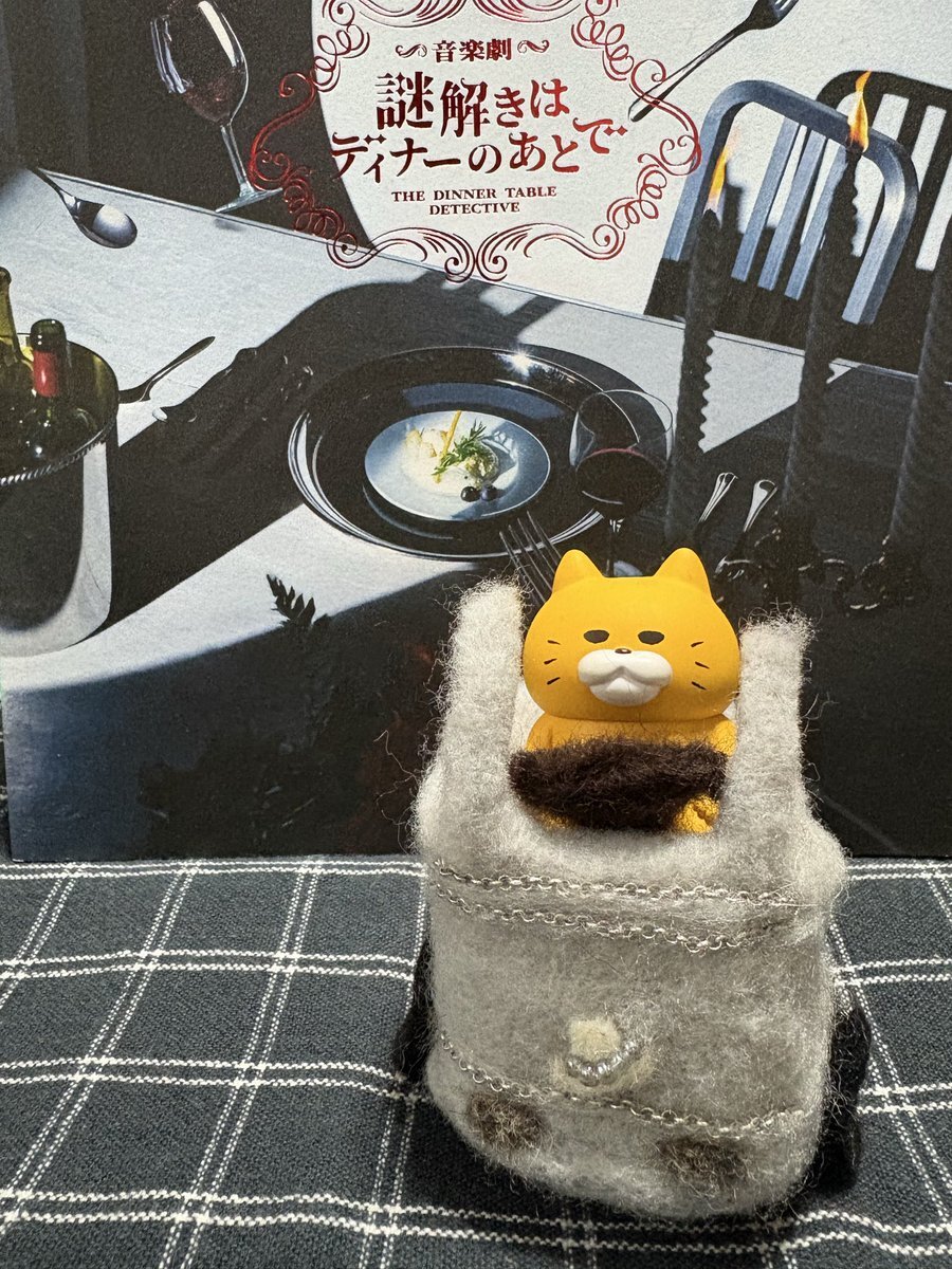 【謎ディ思い出4】 風祭警部が舞台となるシュヴァルツクスト公国の説明をする時に肩に黒猫を乗っけて登場する。肉球がピンクでこんな感じ。 客席には「かわいい×2 仔猫ちゃん達」と呼びかけるけれど日によってかわいいが2回だったり3回だったり。大千秋楽は3回でした。 #謎解きはディナーのあとで pic.x.com/gSfczLxrjo