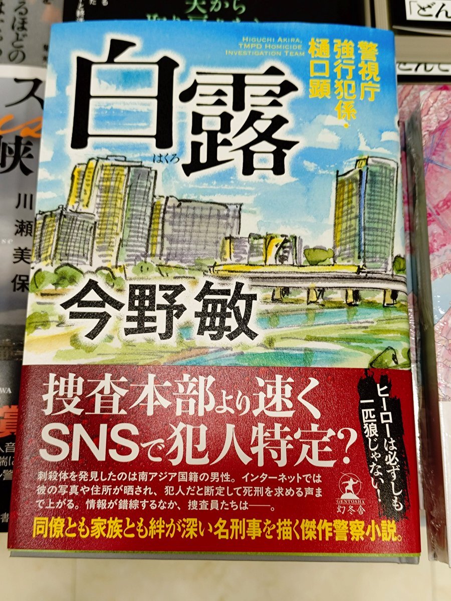 警察小説と言えば… 🚓#今野敏 さんの最新刊入荷 『#警視庁強行犯係・樋口顕 白露はくろ』 #幻冬舎 刊行 東京の世田谷区の工事現場で 他殺体が見つかった。 第一発見者は そこで働く南アジア国籍の男性。 警視庁捜査一課の樋口班が捜査を進めるなか SNSでは彼の実名が書き込まれ 犯人ではと疑う声… pic.x.com/G4Xv95O6ju