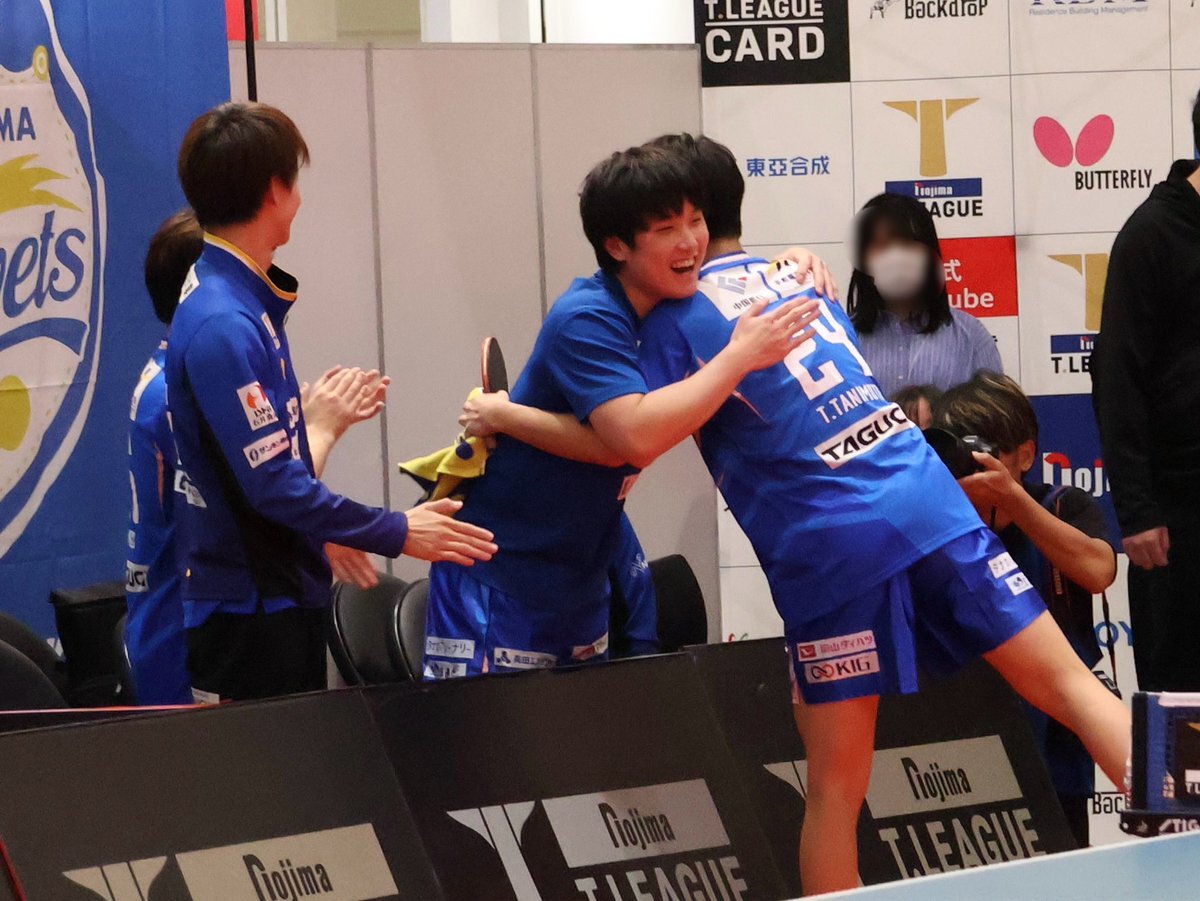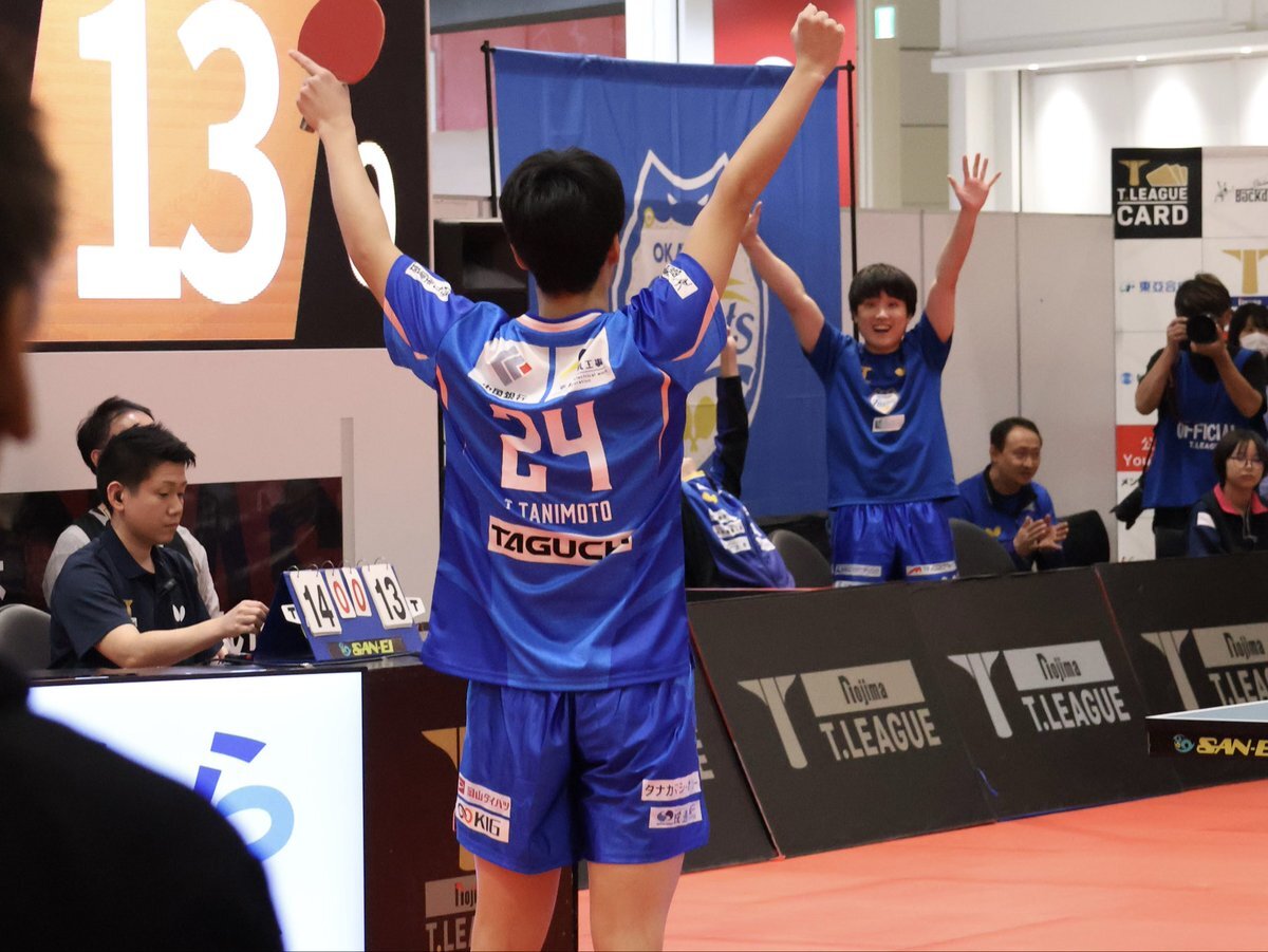 #Tリーグ#岡山リベッツ は15日、埼玉県越谷市のイオンレイクタウンでの静岡ジェード戦に3-2で勝利。ビクトリーマッチではこの日がTリーグデビューの高校3年 #谷本拓海 選手が「たぶん人生で初めて」という3-10の崖っぷちから大逆転。「信じられない。本当に勝ったんかな」と喜んでいました。 pic.x.com/p79eSdZmHF