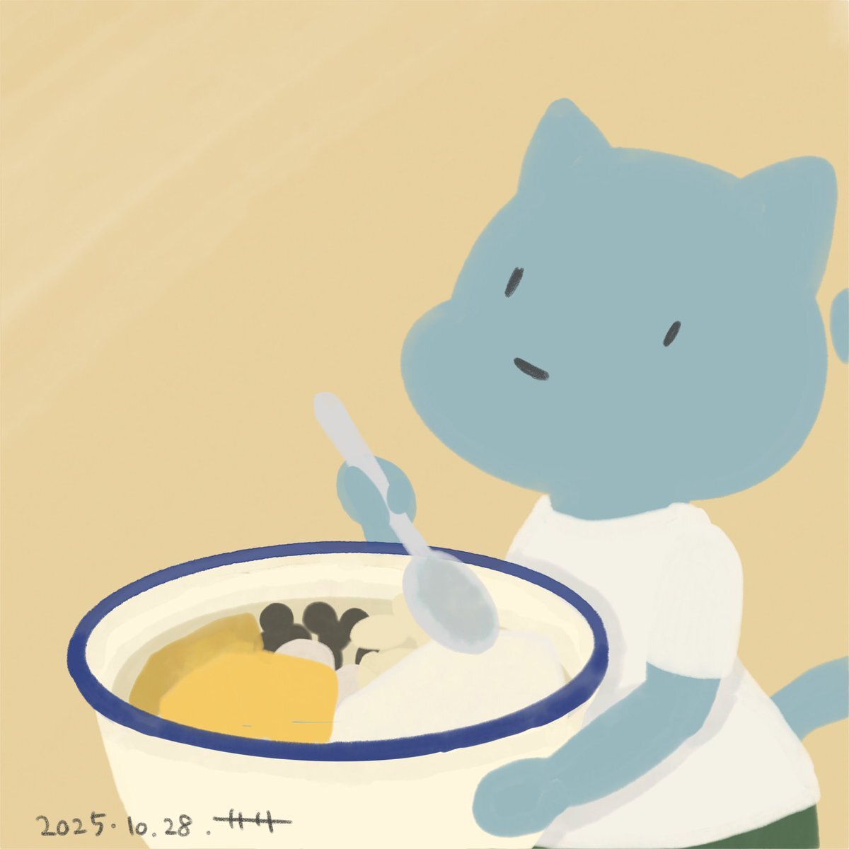 #豆花記念日 なので、豆花を食べるねこくんを描きました!! はじめての豆花に興味津々なねこくんです✨ はじめて食べた時、豆腐がスイーツ!?と思いましたが食べてみるとシロップがおいしく、さっぱりしていておいしいなと思いました😋 #イラスト #一日一絵 pic.x.com/zK6r7wmEpr