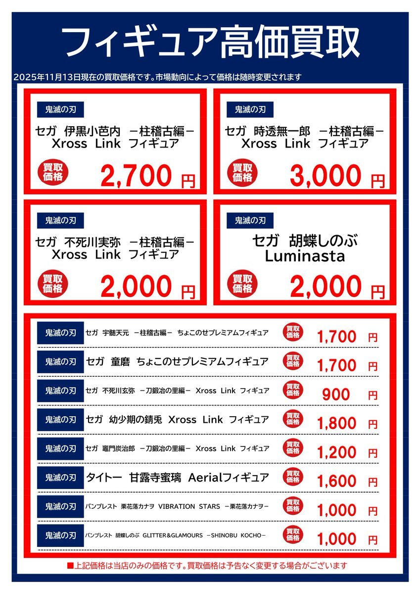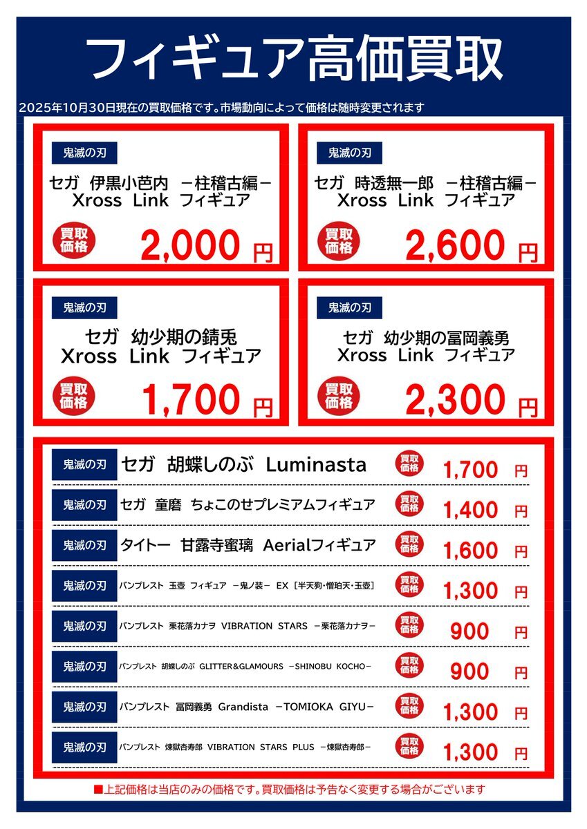 🔥フィギュア高価買取リスト更新🔥 当店ではフィギュアの買取強化をしております‼️ 下記リストアイテムの売却を検討中のお客様は今が高価買取のチャンス🎯 持ち込み1点からでも大歓迎です🙇♀️ 是非当店にお売りくださいませ🔽🌲 #ブックオフ #豊田下林店 #フィギュア pic.x.com/TCmHbbUm0W
