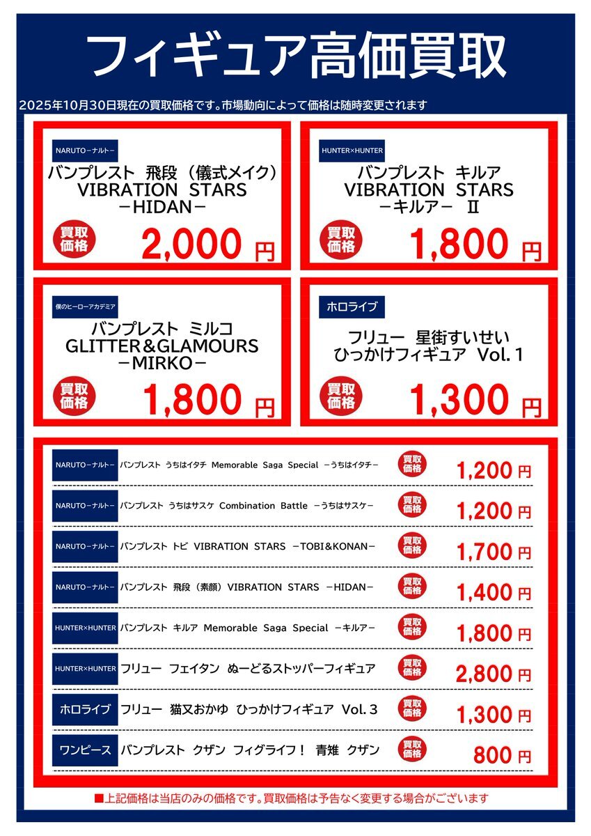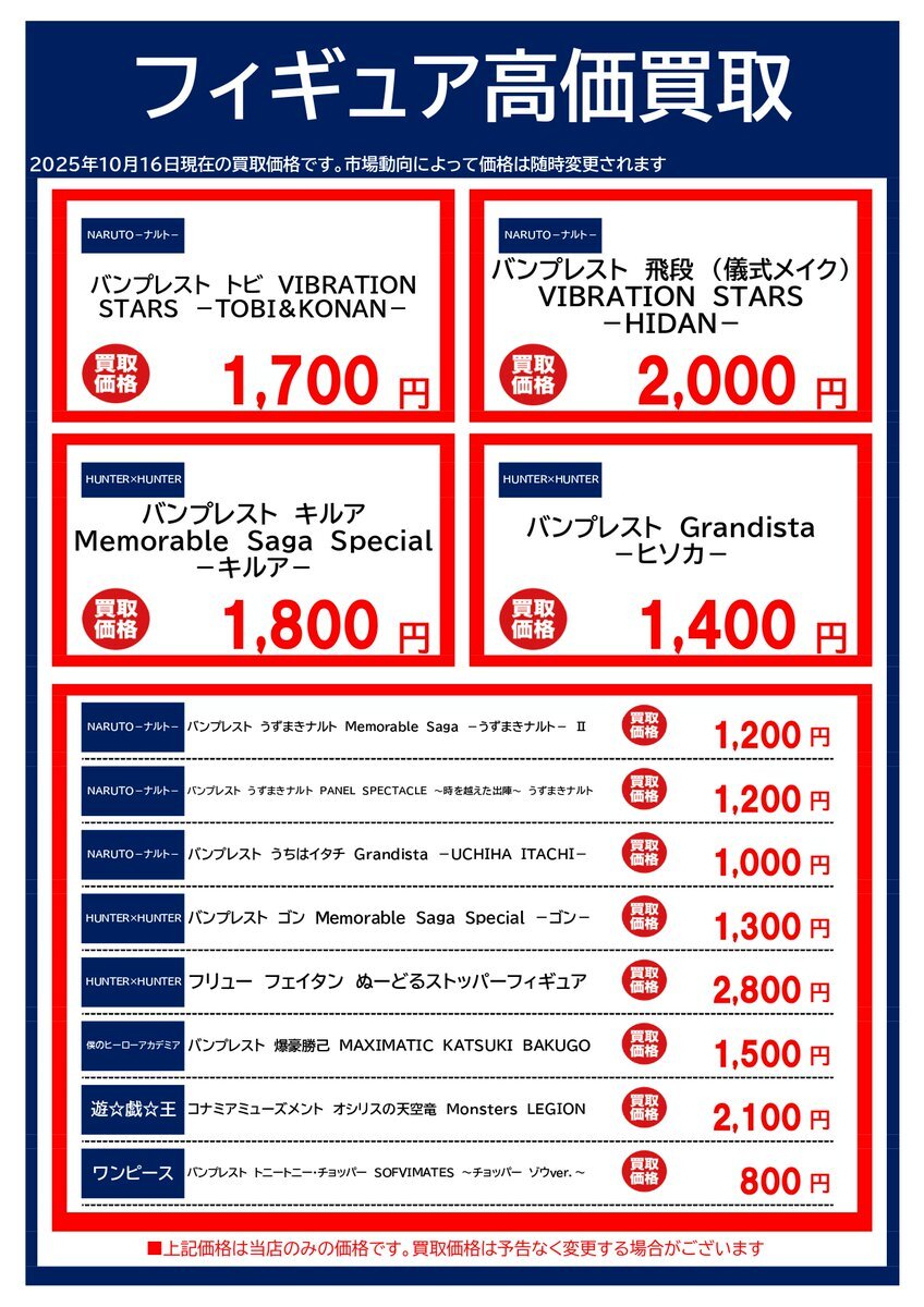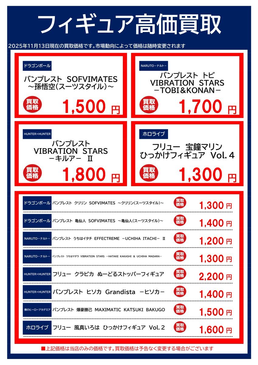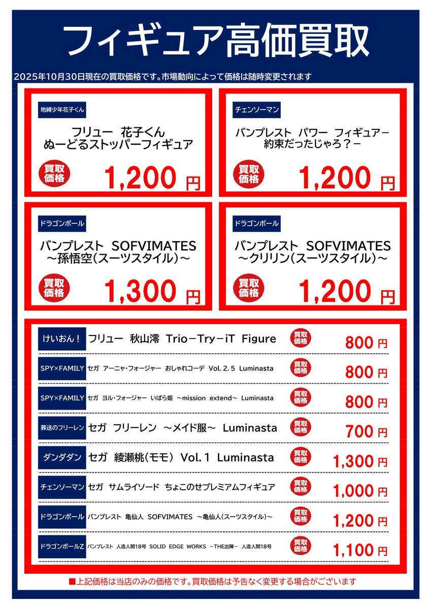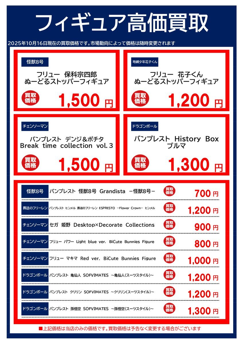 🔥フィギュア高価買取リスト更新🔥 当店ではフィギュアの買取強化をしております‼️ 下記リストアイテム売却を検討中のお客様は今が高価買取のチャンス💪 是非当店にお売りくださいませ🙇♀️ ご来店お待ちしております🔽🌲 #ブックオフ #豊田下林店 #フィギュア pic.x.com/Zb7IJmk1AR