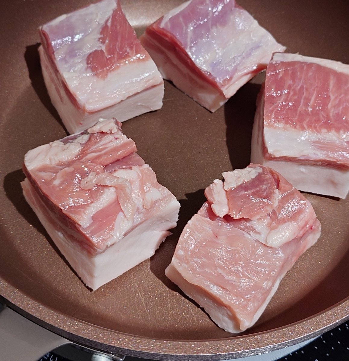 お疲れさま 明日も仕事なのだが… 豚の角煮が食べたくて… 豚バラブロック様を連れて帰ってきて今しがた切って焼き色付けたので… あとは炊飯器先生におまかせする🐷 #おうちごはん #炊飯器 #豚バラ #豚角煮