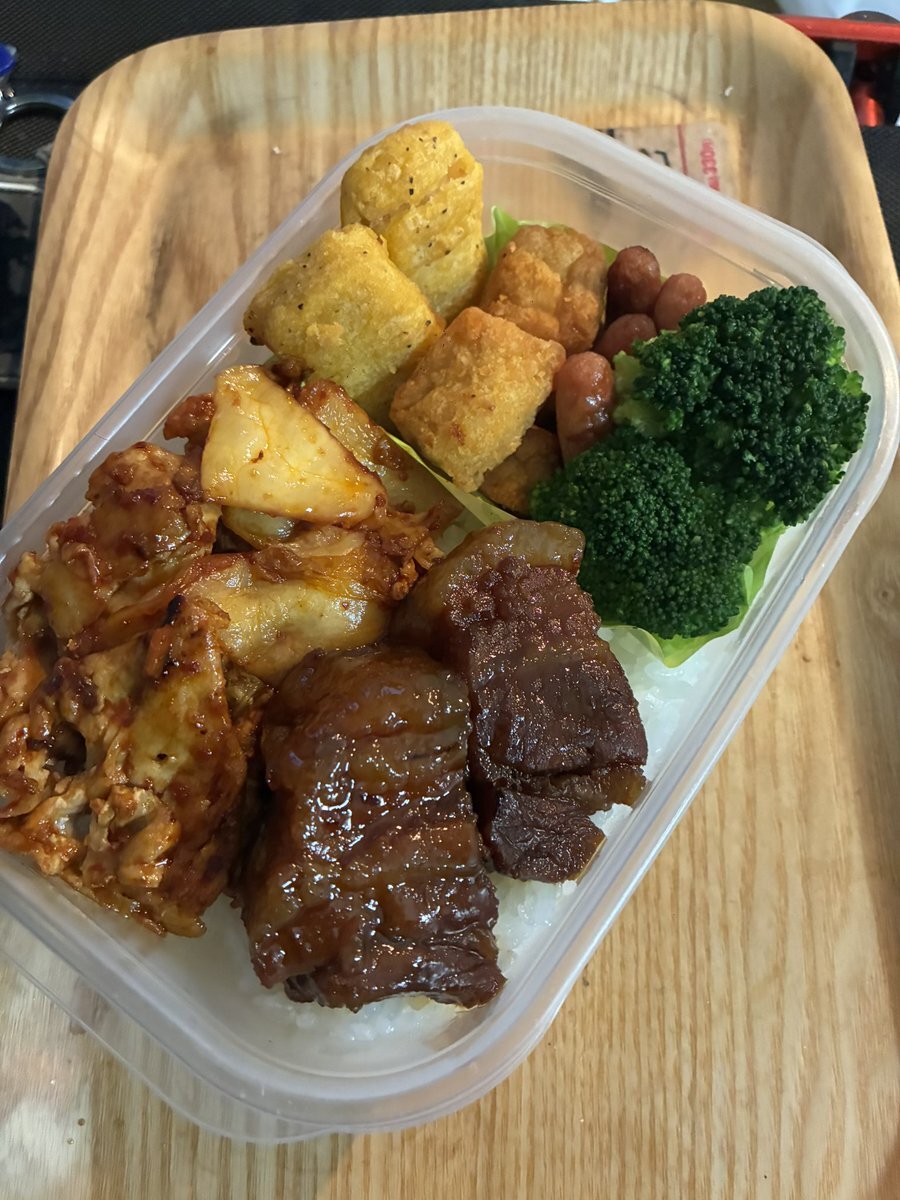 本日、豚キムチ弁当🍱 賞味期限の関係で豪華なお弁当になりました♪ #お弁当 #お弁当作り楽しもう部 #お弁当記録 #料理好きな人と繋がりたい #タッパー弁当 #豚キムチ #豚角煮 pic.x.com/RE4mS5bvY8