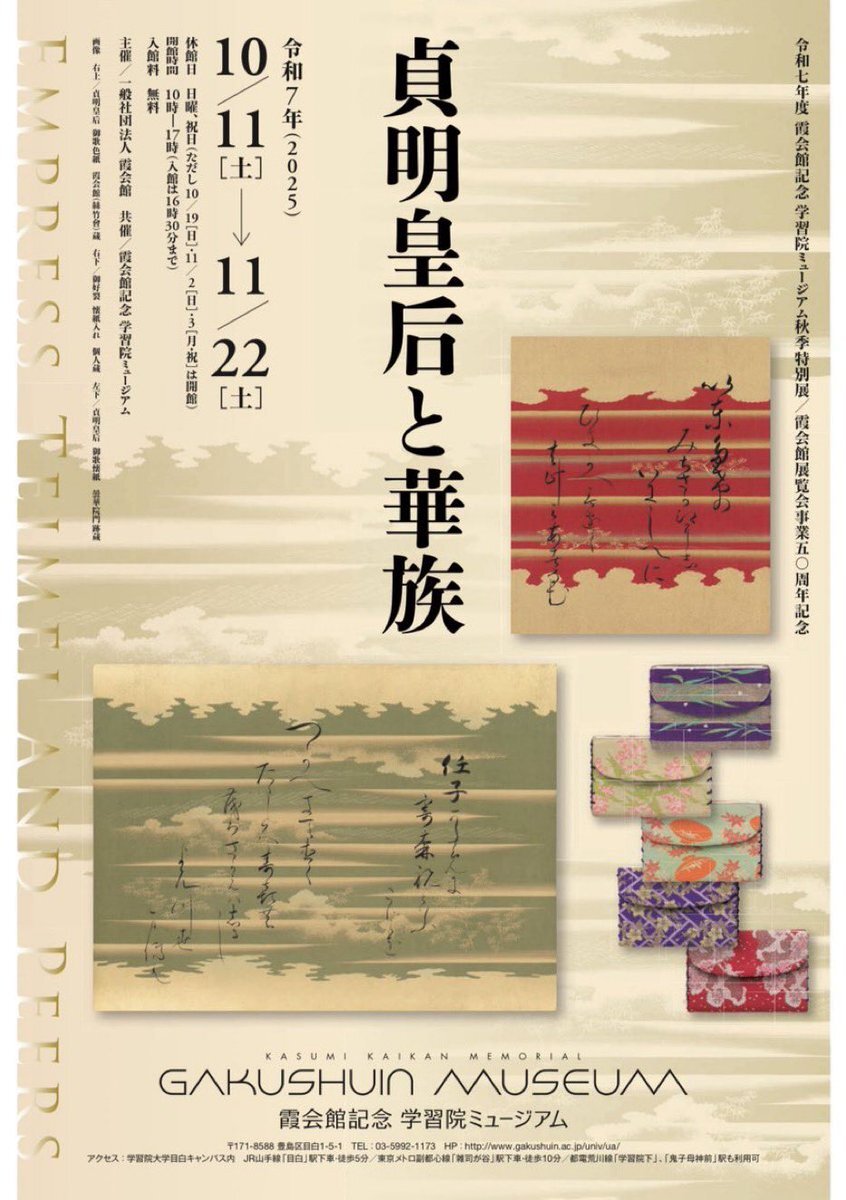 【展覧会「#貞明皇后と華族」開催中 】 〜11月22日(土) 10時〜17時(入館は16:30まで) 休館日:日曜・祝日 ※11/2・3は開館🌸 ◯関連講座「貞明皇后と華族」 10/25(土)14時〜15時30分 ◯ギャラリートーク 11/1・15 各日14時〜 いずれも無料、申込不要です🌸 #霞会館記念学習院ミュージアム pic.x.com/Veel43Z7Lr