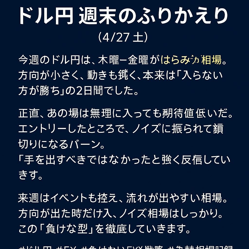 昨夜の寝不足が響いて、 今日は“なんとなくエントリー”が増えてしまい、 昨日の利益をほぼ飛ばしました。 FXはメンタルと体調がすべて。 “根拠が薄い時は入らない”を徹底していきます。 同じ失敗、ここで止める。 #負けないFX戦略 #ドル円 #トレード記 pic.x.com/JU5AINhH16