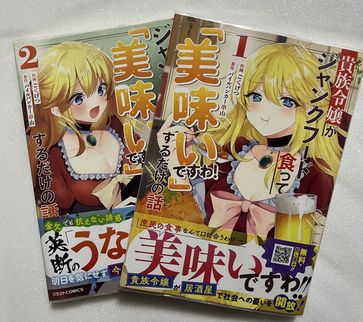 買ったぜ。 1巻、2巻同時発売なのが嬉しい😆 原作小説も追っていますがコミカライズ版も良い感じ。おすすめです というか貴族令嬢が「足立区立貴族子女工業高校」出身ってなんだww それだけでもうおもしろいのズルい🤣 #貴族令嬢がジャンクフード食って美味いですわするだけの話 pic.x.com/a4Rw92oMv7