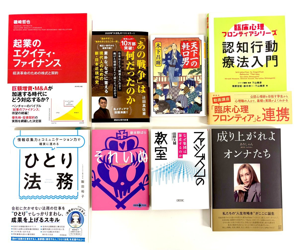 今週 #ブクボン が #買ったり読んだりした本📕です。みなさんはどんな本と出会いましたか? #起業のエクイティ・ファイナンス #磯崎哲也 #ひとり法務 #飯田裕子 #あの戦争は何だったのか #辻田真佐憲 #認知行動療法入門 #臨床心理フロンティア #下山晴彦 #熊野宏昭 #鈴木伸一 #ファシズムの教室 pic.x.com/YiD2m0j2WE