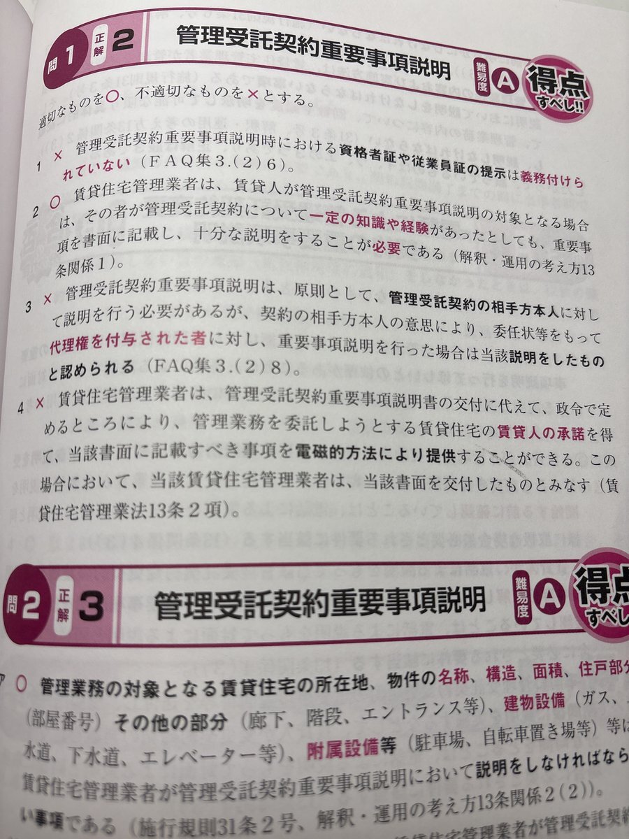 明日は賃貸不動産経営管理士資格試験です。 受験して合格した時はまだ民間資格でしたがこの年から出題数が50問となり 難易度も上がった印象でした。 その後に国家資格化へ移行となりました。 今のが試験レベルは間違いなく難しいと思います。受験する方々は頑張って下さい。 #賃貸不動産経営管理士 pic.x.com/Ibibk7CtdD