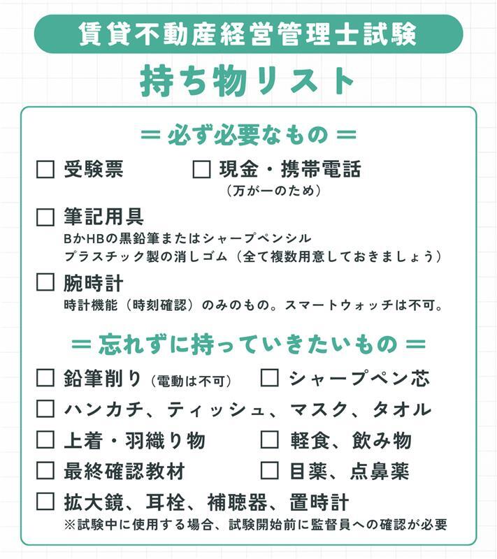 【賃貸不動産経営管理士試験 持ち物リスト】 16日(日)はいよいよ 賃貸不動産経営管理士試験当日です! 試験当日の持ち物と注意事項をまとめましたので、ぜひ参考にしてください✨ 学習してきた成果を存分に発揮するためにも、 余裕をもって準備をしておきましょう! #賃貸不動産経営管理士