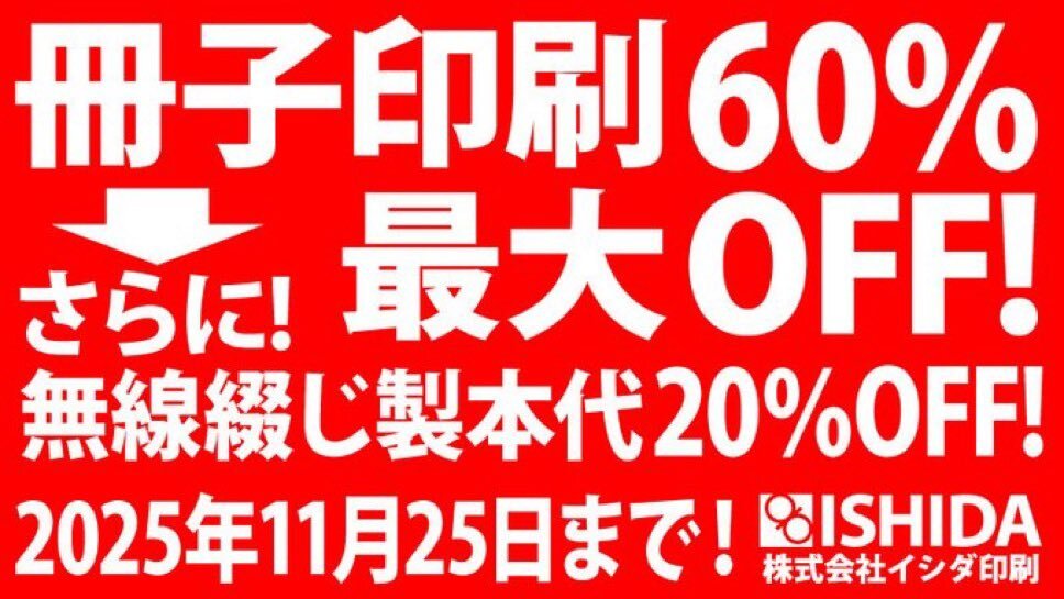 11月🉐第2弾 🈹(11月25日まで) 最大割引60%キャンペーン+無線綴じ製本代を20%オフ発注予約できます。 lowcost-print.com 好感いただければリツイート シェアお願いします。 🈹新お得なクーポン配信中🈹同時利用可 #オンデマンド #冊子 #印刷製本 #資料 #同人誌 #報告書 #写真集 pic.x.com/zGxZSagEk3