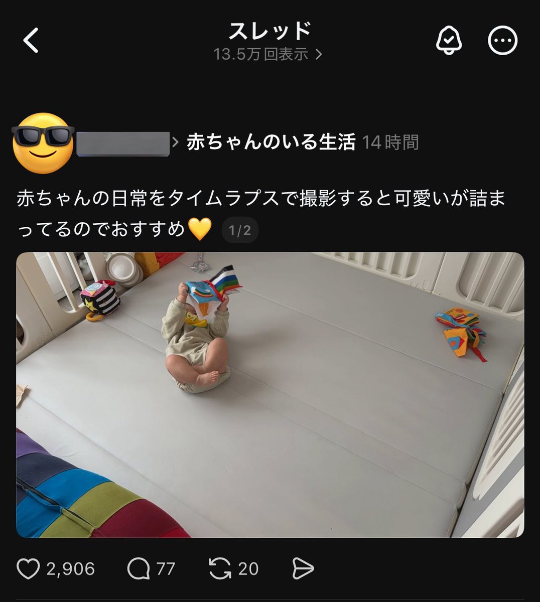 タイムラプス我が子いろんな方に可愛いといっていただけて嬉しい🤭 ゴロゴロするくらいのベビちゃんがいる方はタイムラプス撮影おすすめです📸👶🏻 #threads #スレッズ #タイムラプス #赤ちゃんのいる暮らし pic.x.com/8CKg0J483l