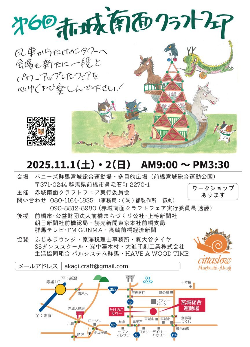 今週11/1(土)11/2(日)9:00~15:30 開催 第6回 赤城南面クラフトフェア 今年の会場は 前橋市宮城総合運動場 音羽倶楽部からほぼ直線 車で約10分です 木工・ガラス・陶磁器などクラフト作家が 全国より約120店も出展 2日間で1万人以上が来場するビッグイベントです #赤城南面クラフトフェア pic.x.com/7vb9bzLilo