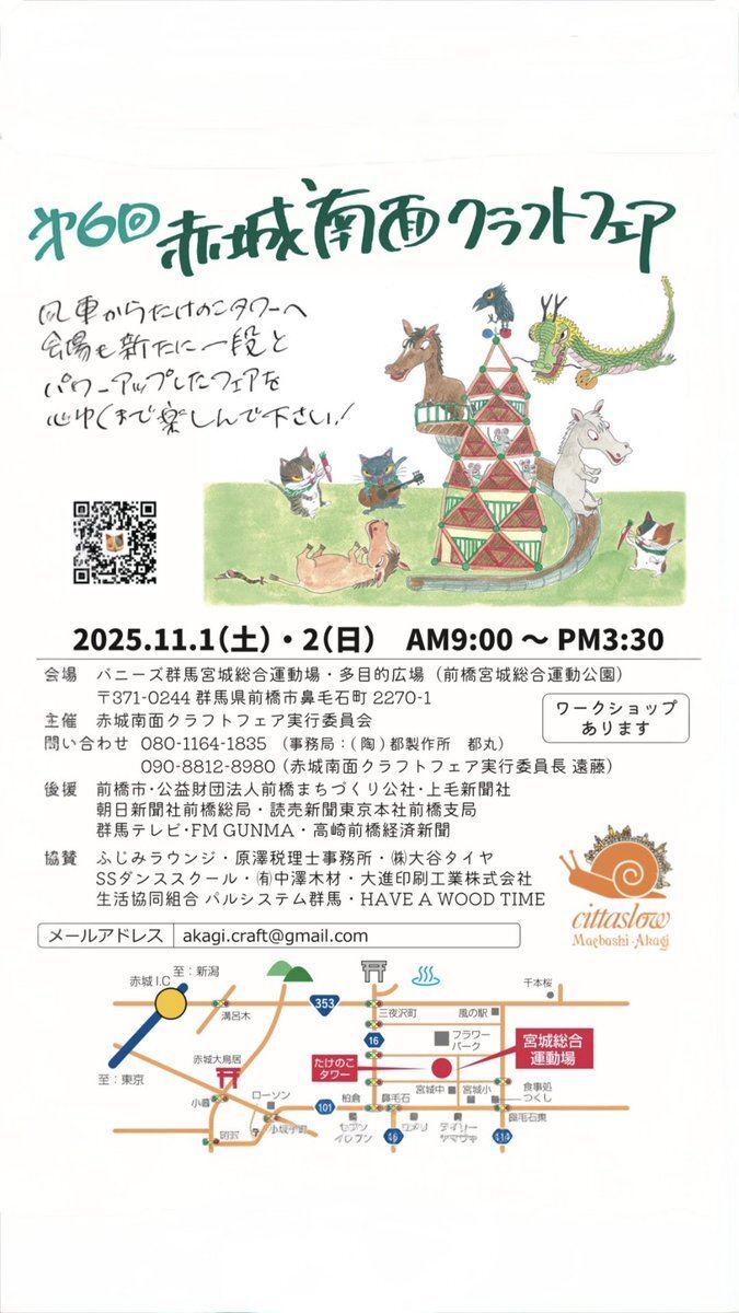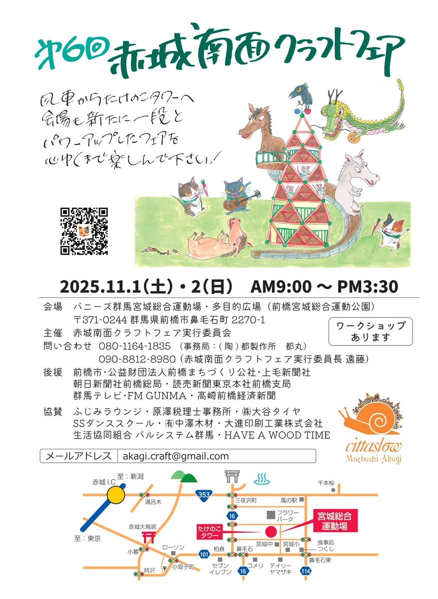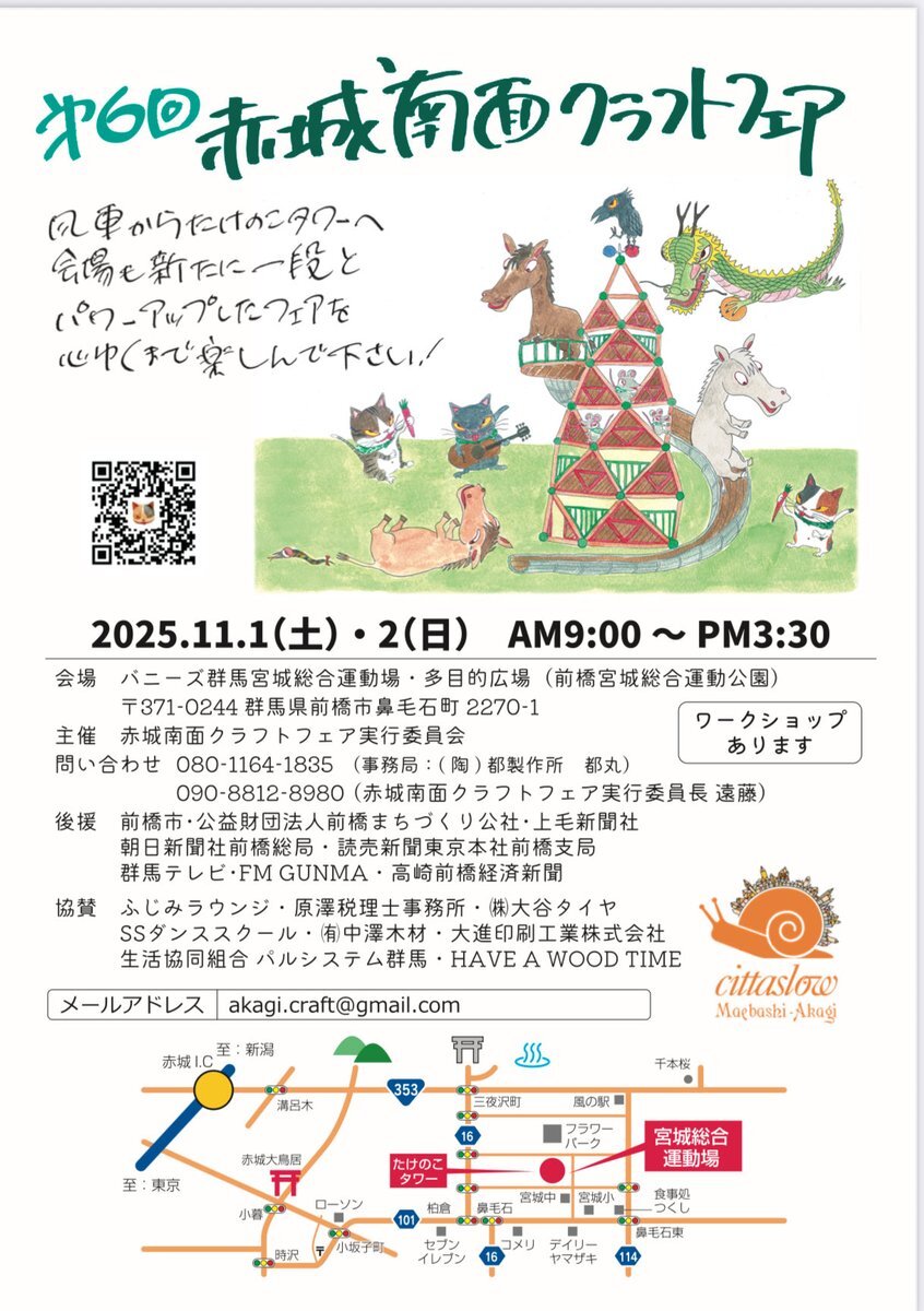 今週末は群馬県前橋市の宮城総合運動公園にて「赤城南面クラフトフェア」に出展します。 @akagicraft 昨年と違う会場になりますのでお気をつけ下さい。 ブースは86番、真ん中の通路沿いになります。よろしくお願いいたします。 #群馬県 #赤城南面クラフトフェア #前橋市 #宮城総合運動公園 pic.x.com/bJ9sq6exb1
