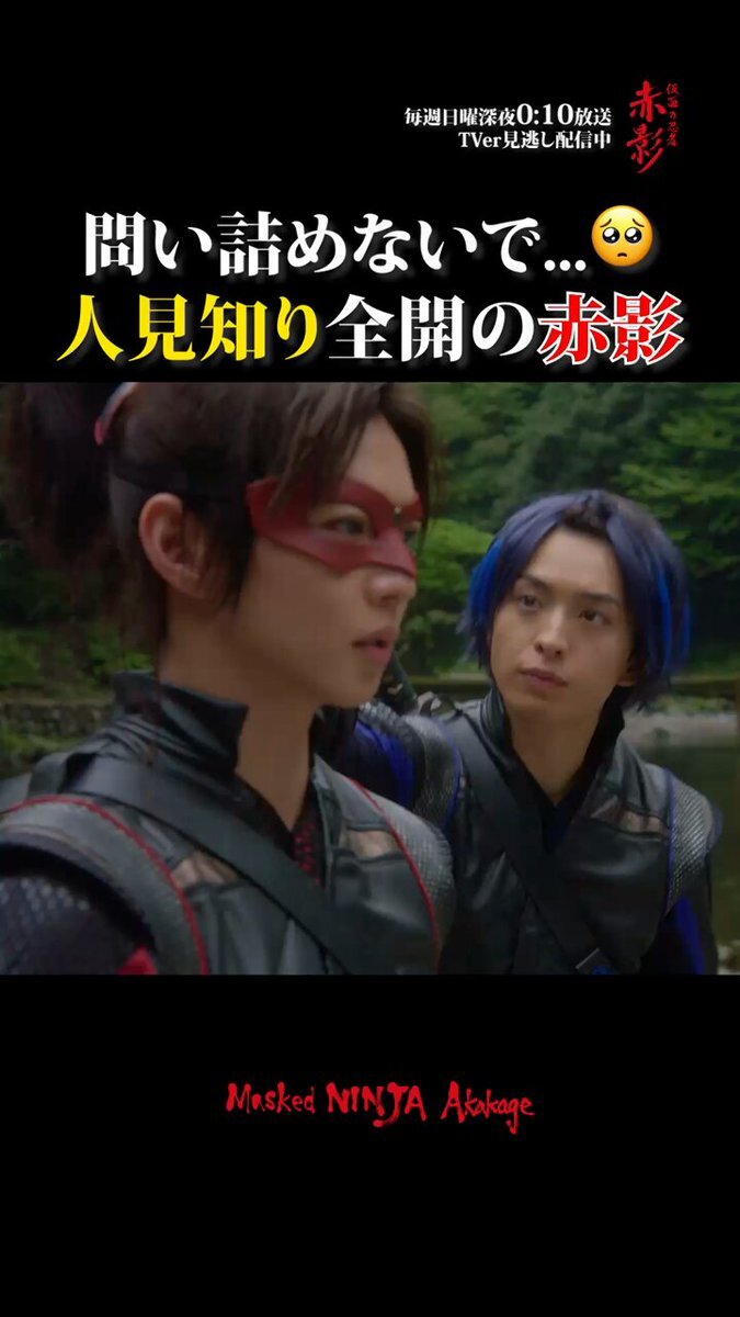 ⚔️ #赤影切り抜き 人見知りすぎてフリーズする赤影🧊 青影が頭をコツンと叩いて確認中🤭 毎週日曜深夜0:10放送📺 TVerで無料配信中! tver.jp/episodes/epr73… #仮面の忍者赤影 #佐藤大樹 #木村慧人 #中尾暢樹 #水石亜飛夢 #志波景介 #唐橋充