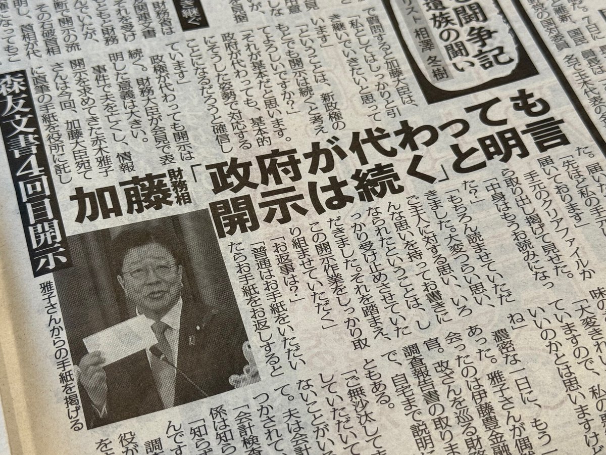 森友文書4回目の開示 近畿財務局職員のメールなど約2万5000ページ 妻・雅子さん「夫がつらい思いをしてたのを知れたらいいな」(ABCニュース) #Yahooニュース news.yahoo.co.jp/articles/0c695…