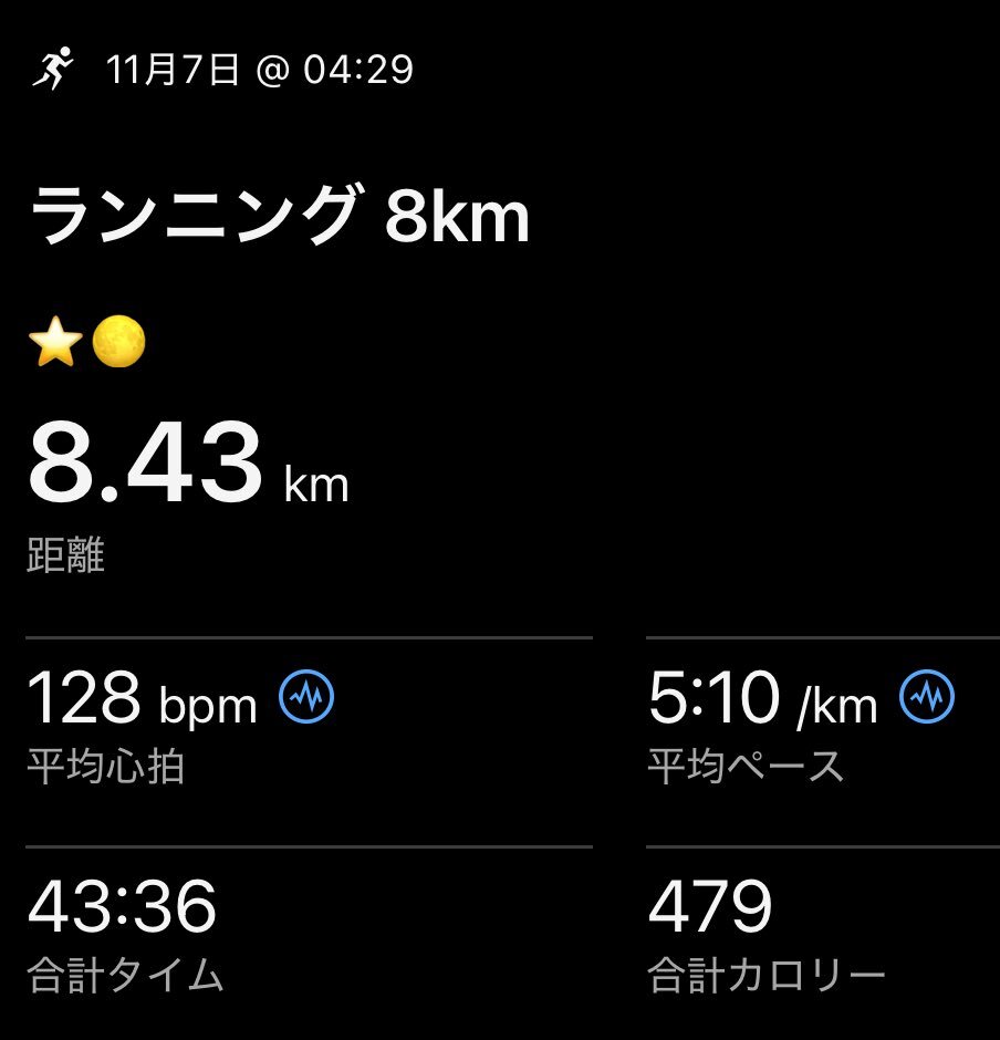 朝ラン8km 🏃🌕⭐️ 月あかりで夜明け前でも明るかったです。 ありがとうございます😁 今日も前向きにいきます👍 みなさんにグッドラックを🤞 #running #GARMIN #走れることに感謝 pic.x.com/CatHMimo82