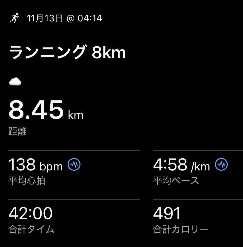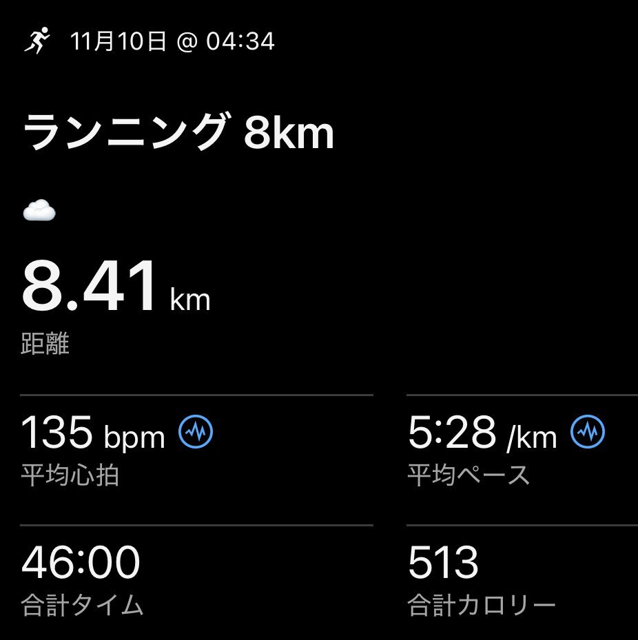 朝ラン 8km 🏃‍♂️⭐️ 曇っていましたが、ひとつだけ明るい星が見られました。ありがとうございます。 今日もたのしくのりこえます👍 みなさんに何か良いことが ありますように🤞 #running #GARMIN #走れることに感謝 pic.x.com/fYSdqnUJil