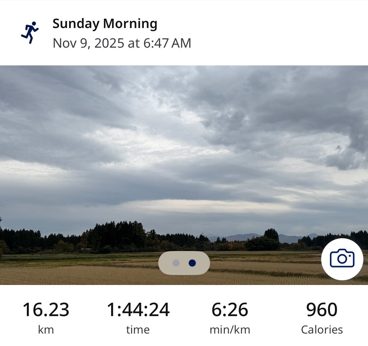 今日は気温6℃ 湿度86% 曇天☁️の下、サンデーモーニングラン16.23km♪ 熊遭遇🐻を回避するため、周回コースをLSDペースジョグ🏃‍♂️💦 本日レースのみなさん、存分に(苦し)楽しまれてください🤗 縄跳び💯回+二重跳び 連続27回 #ASICS #Novablast4 👟 #朝ラン #ランニング #走れることに感謝 #RunToFeel pic.x.com/NVtetpZ0Wa