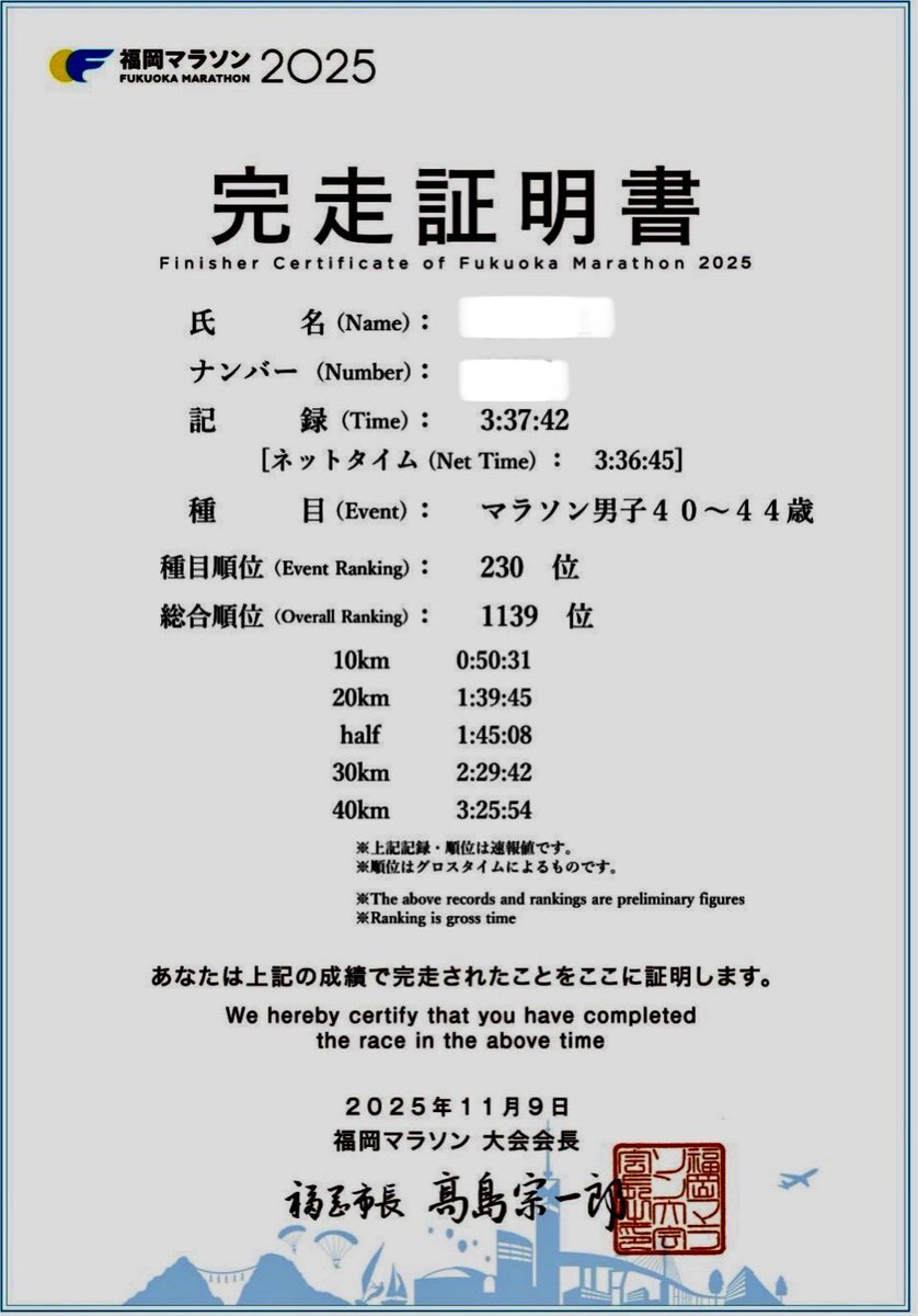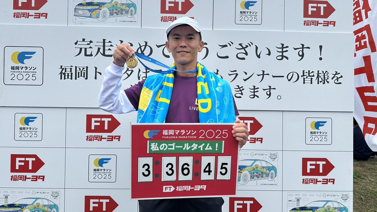 本日は #福岡マラソン 無事に⁉️完走&PB更新は出来ました✌️ ただ、目標にしていたサブ3.5には未達( ˶'꒳'˵ ) まだまだそのレベルには至っていなかったようですが、めげずに今日を距離走と捉えて次のステップへ進んでいきたいと思います💪👈 #走れることに感謝 #フルマラソン #ライブラン pic.x.com/e3r2C1RRQ7