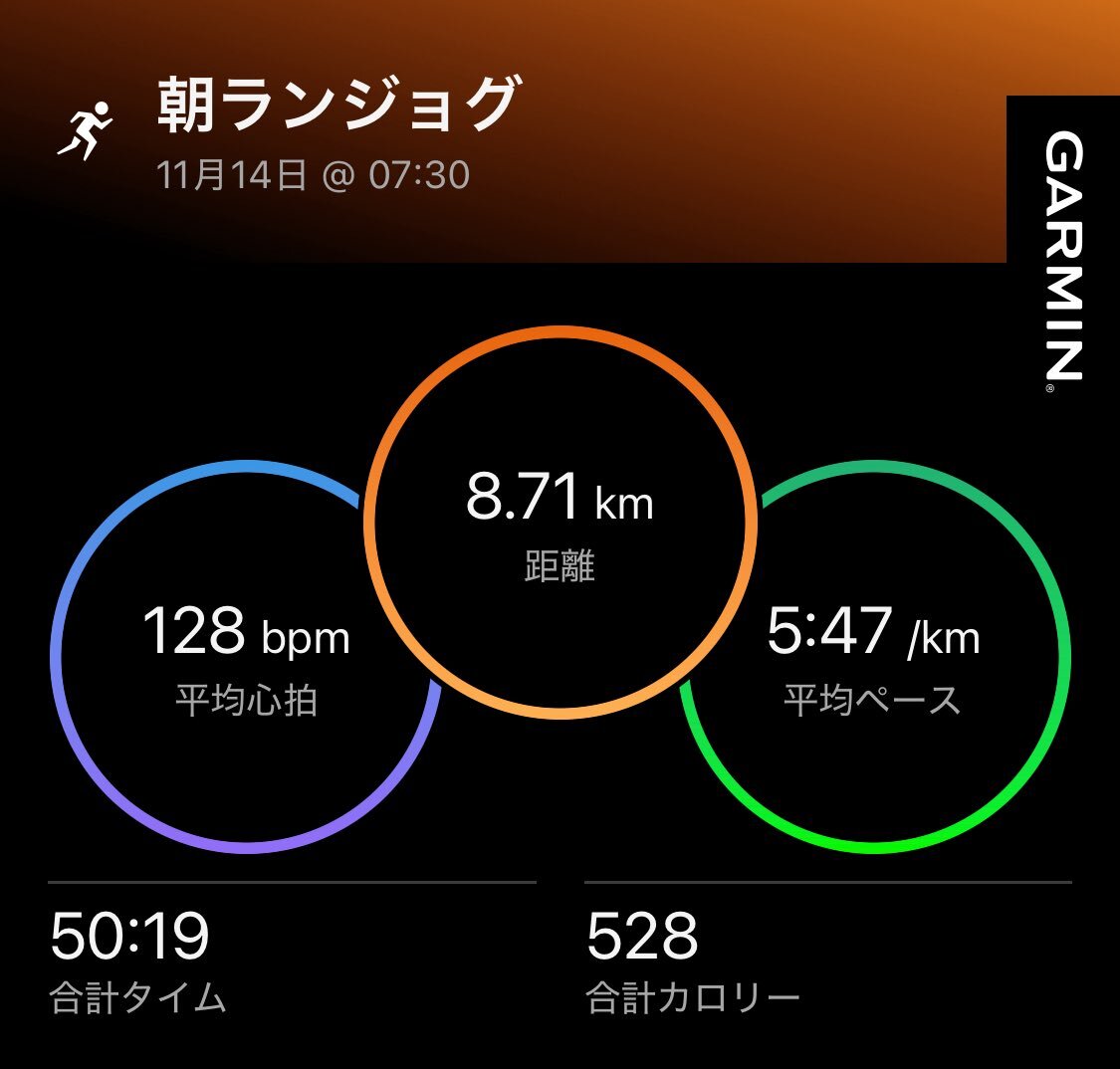 朝ラン8km 🏃☁️ 眠い。今日も残業が予想されますが、1分でも早く帰りたい😆自分ベストで乗りきります👍みなさんに何か良いことがありますように☆彡 #running #GARMIN #走れることに感謝 pic.x.com/s4xajMg48W