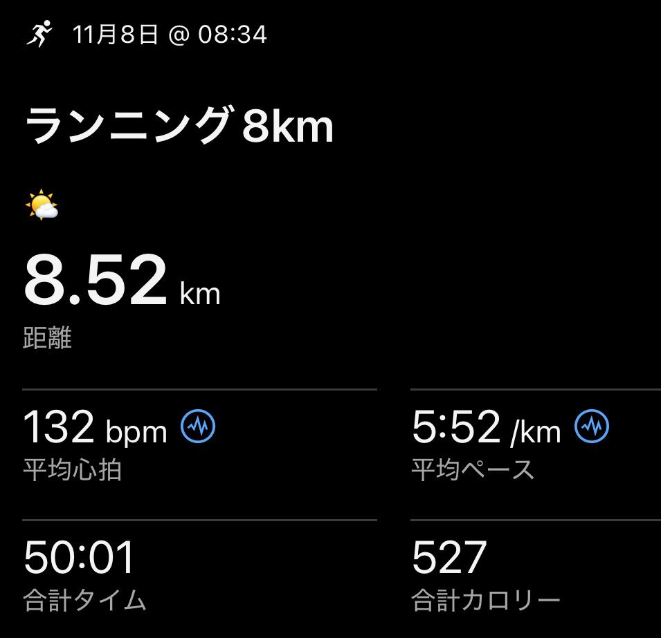 休日ラン8km 🏃🌤️ 50分だけ走りました。 明日は雨のようなので、 今日の晴れをしっかりたのしみます👍 みなさんにグッドラックを🤞 #running #GARMIN #走れることに感謝 pic.x.com/9pbs2y71ID