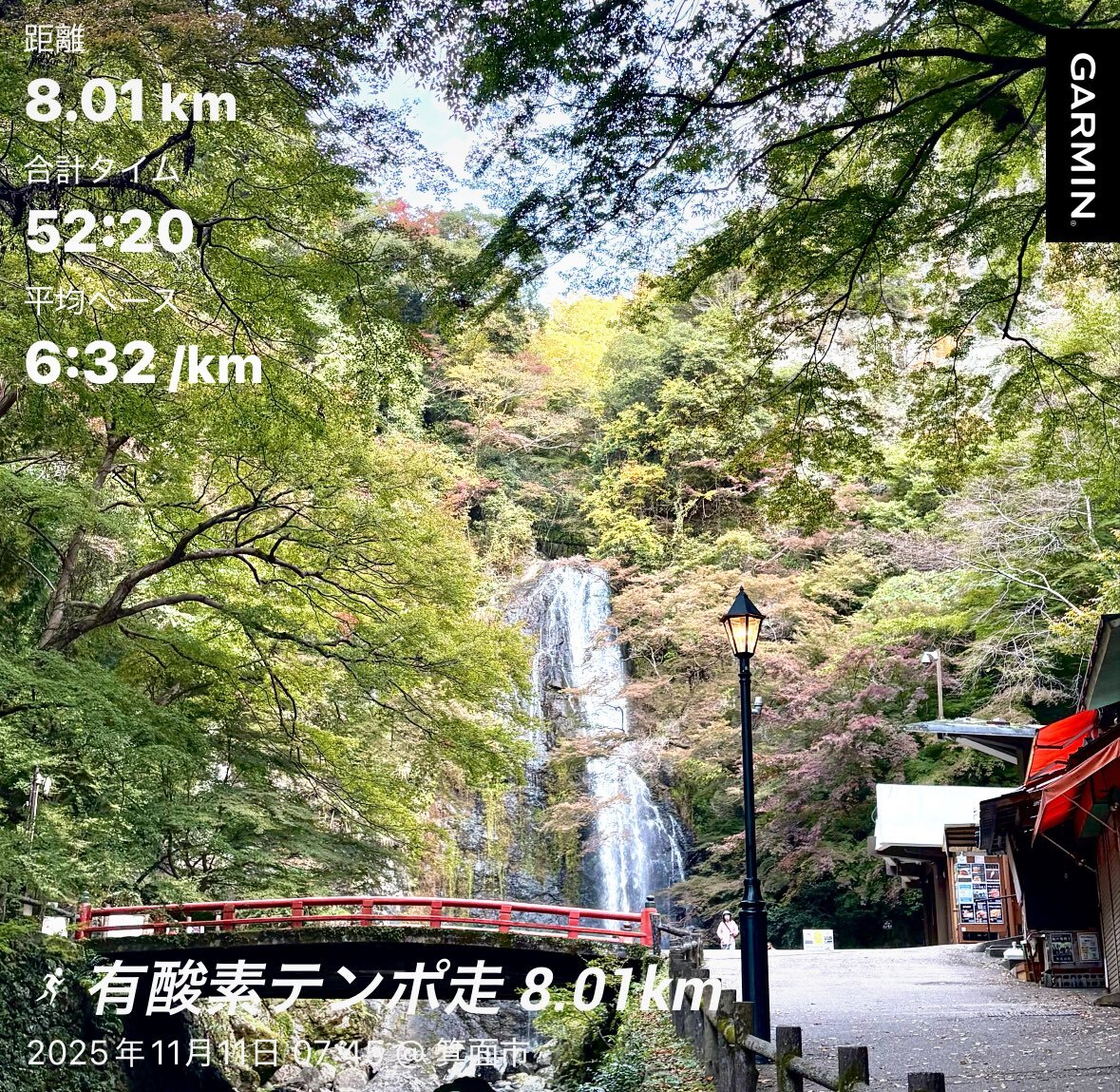 有酸素テンポ走 8.01km🏃‍♀️ 1週間ランオフしても 阪急箕面駅から箕面大滝まで 歩かずに登り切れるかを 試したかったので敢行! 心拍を見ながらノロノロ🐢だけど大丈夫だった😆 箕面に観光シーズンが到来し始めている。🍁はあと少し先かな😊 #ランニング #走れることに感謝 #紅葉シーズン #箕面大滝 pic.x.com/YESlYh8DSS