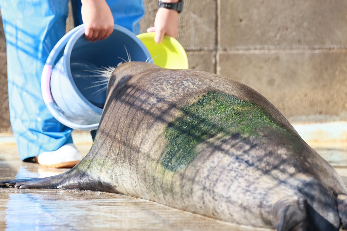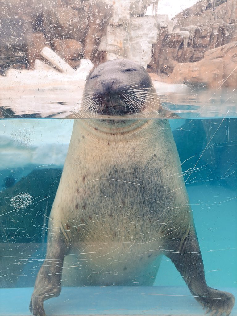 #おさかなが終わったことを信じられないシリーズ バケツの中を覗き込むアグリさん🦭 「え、お魚もう無いの?」 「嘘でしょ…」 #アグリ #越前松島水族館 #ゴマフアザラシ #アグリ ※既出です pic.x.com/CtbsQpI4g6