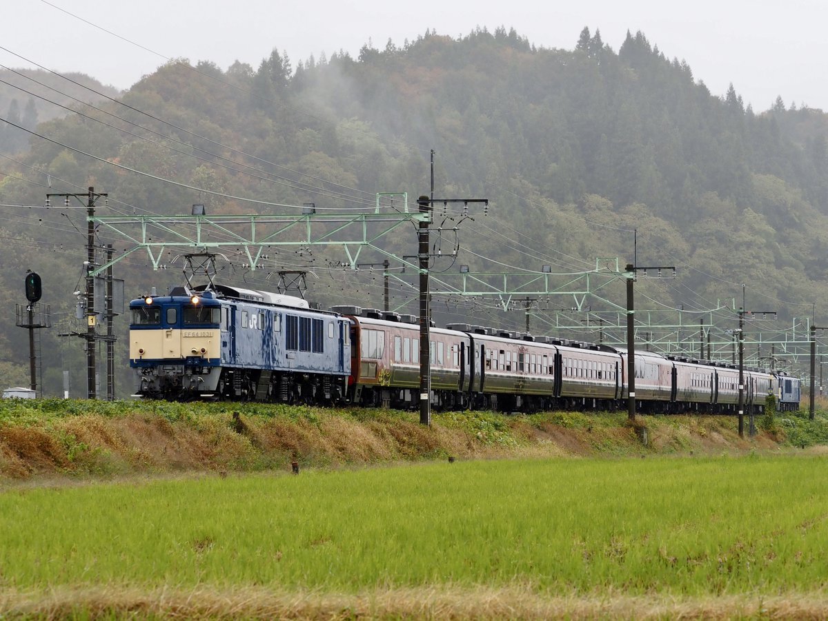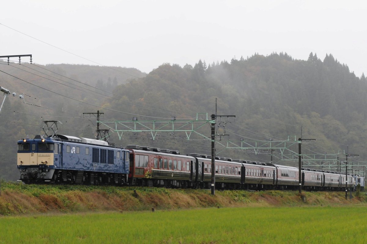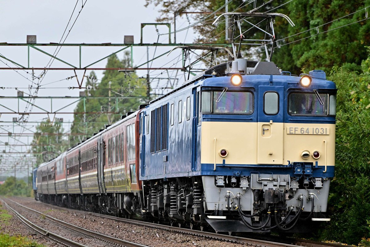 2025年11月1 日 9720レ EF64 1031+12系(ばんえつ物語)+ EF64 1032 越後湯沢駅100周年号 #EF641031 #EF641032 #越後湯沢駅100周年号 pic.x.com/pH0F5b8twa