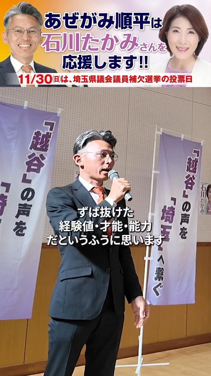 【 #あせがみ順平 が #石川たかみ 候補を支持する理由①】 越谷を良くするための、自分の「活かし方」を知っている #埼玉県議会議員補欠選挙 #越谷市 #越谷をさらなるたかみへ x.com/azegamijunpei/…