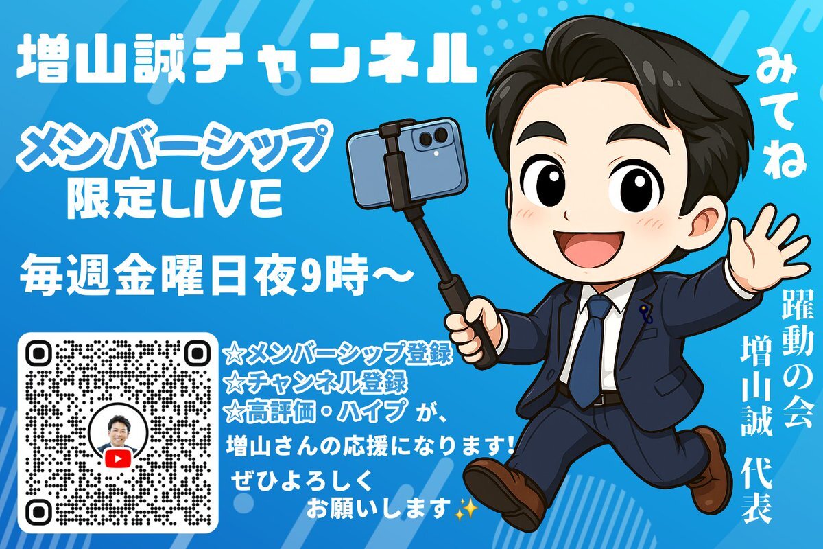 増山さん今リハック見てそうね😊 21時から『増山誠チャンネル』メンバーシップLIVE配信🌱✨ みんな見てね👍 #増山誠チャンネル #増山誠県議がんばれ #躍動の会がんばれ x.com/momo_051004/st…