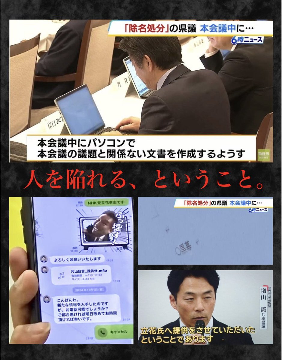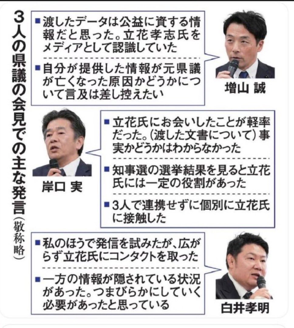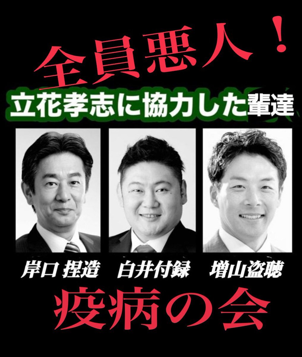 躍動の会の増山・岸口・白井。 百条委の機密情報と竹内県議に対するデマ・誹謗中傷文書を立花孝志に流した彼らがどうなるか。 勾留が決定した立花容疑者の取り調べに期待。 #がんばれ兵庫県警 #デマ・誹謗中傷を許さない #END躍動の会