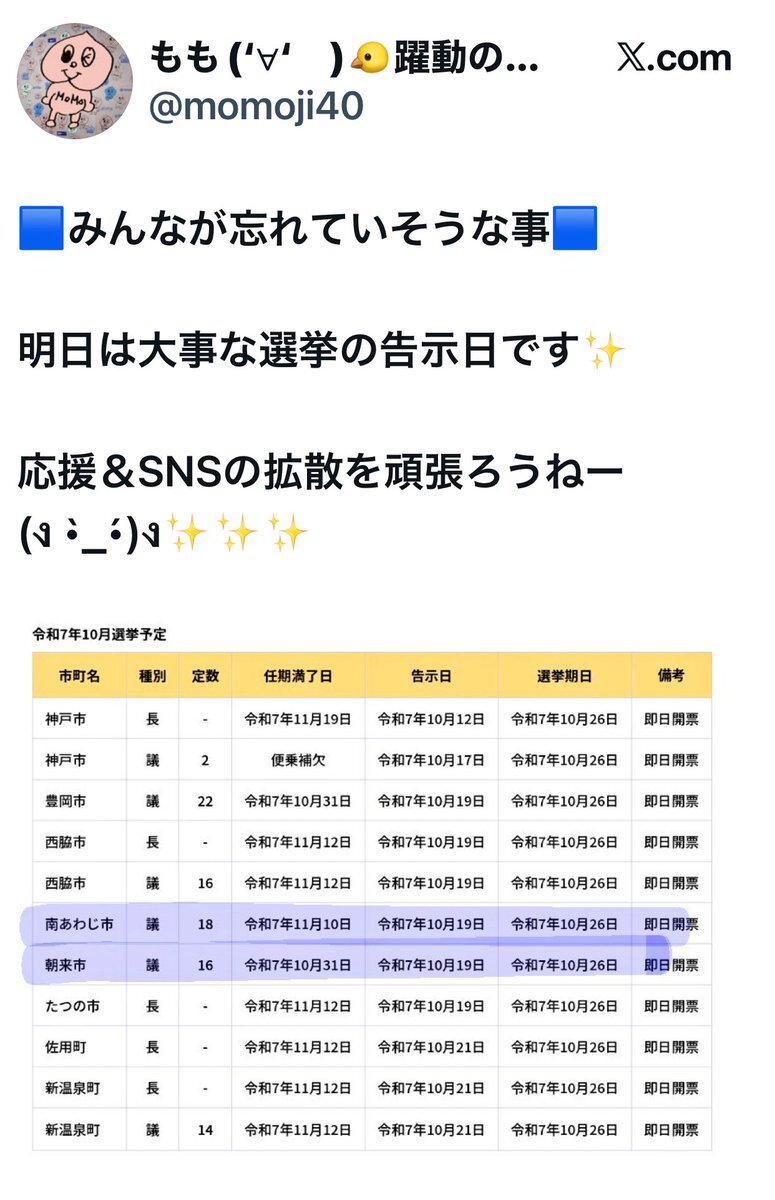⚠️南あわじ市の皆様⚠️ 🗳️期日前投票🗳️反社会的カルト集団注意‼️👁️よく考えて👁️ 🏃♀️➡️🏃♂️➡️リレーお願い🏃➡️🏃♀️➡️ #躍動の会は日本に不要 #躍動の会南あわじから出て行け #躍動の会落選運動 x.com/fukukomakunout…