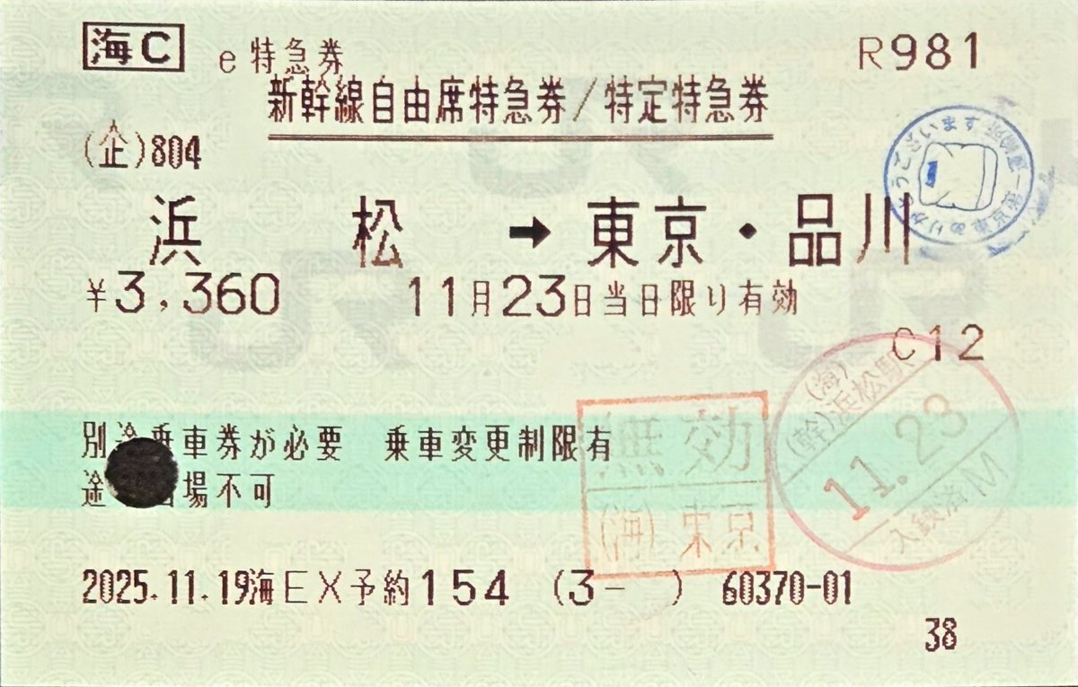 15:17 新潟発 上越新幹線,東北新幹線直通 特別急行 とき326号 東京行き 326C列車 幹ニシF28編成 CI23 ↓ 16:35 大宮着 #東日本旅客鉄道 #JR東日本 #連続乗車券 #自由席特急券 #株主優待券 #新潟駅 #入鋏印 #上越新幹線 #車内改札印 #新潟新幹線運輸区 #E7系 #大宮駅 #無効印 pic.x.com/3fIQLjUnk9