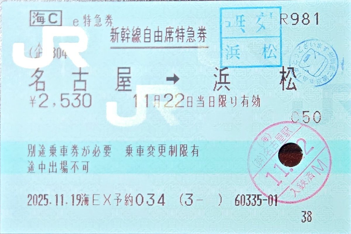 22:22 京都発 東海道新幹線 特別急行 こだま768号 名古屋行き 768A列車 幹サカX56編成 ↓ 23:05 名古屋着 ※終点迄先着 #東海旅客鉄道 #JR東海 #東海道新幹線 #往復割引乗車券 #復割 #京都駅 #入鋏印 #車内改札印 #東京第一運輸所 #名古屋駅 #無効印 pic.x.com/nDl5Ol8jVp