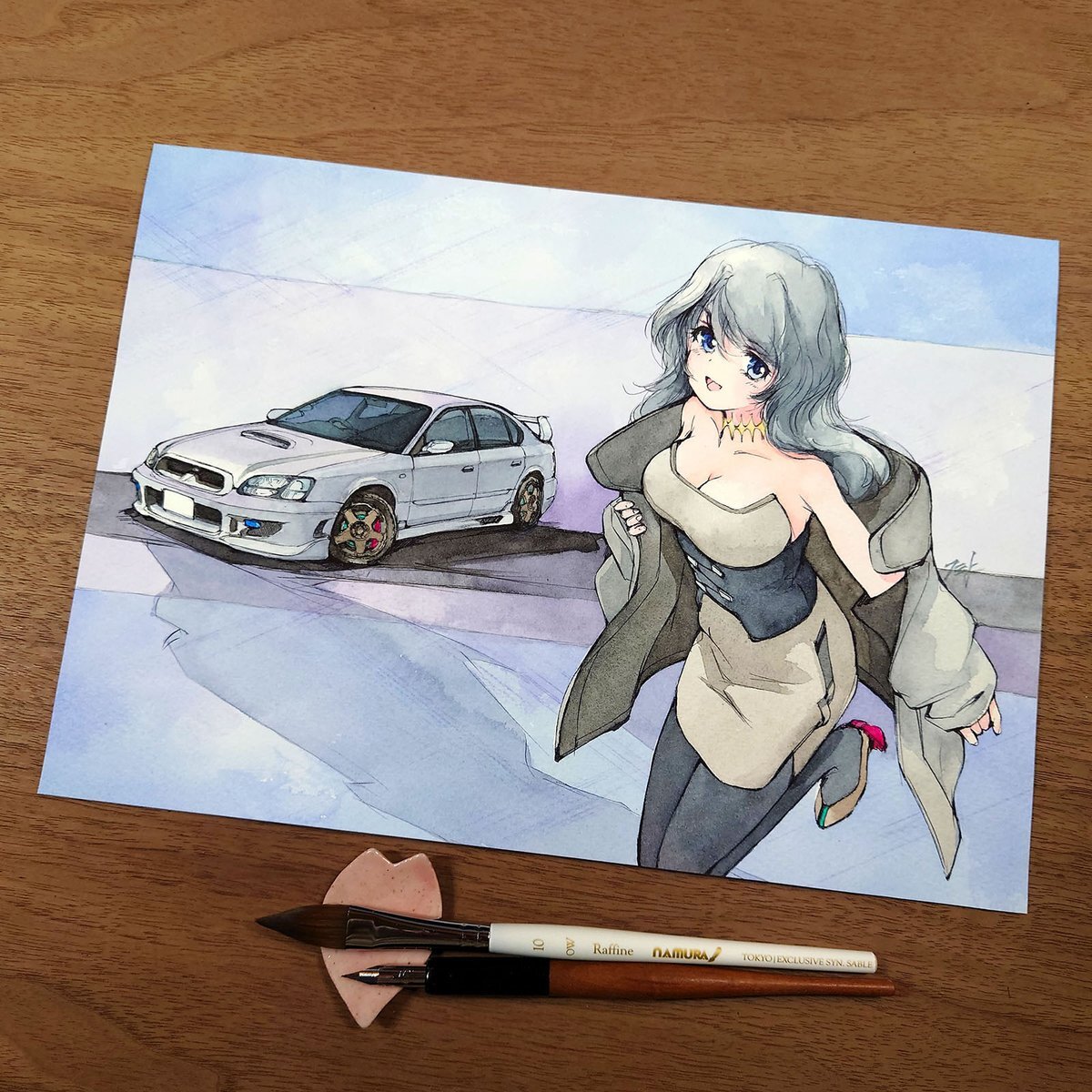 ご依頼( @HS_D_peregrina 様)で #レガシー B4と #車擬人化 イラストを描かせていただきました。ありがとうございました。 以前、車両メインの構図で描かせていただいたのですが、今回はキャラクターメインの構図です。 pic.x.com/6JaVPpLgKP