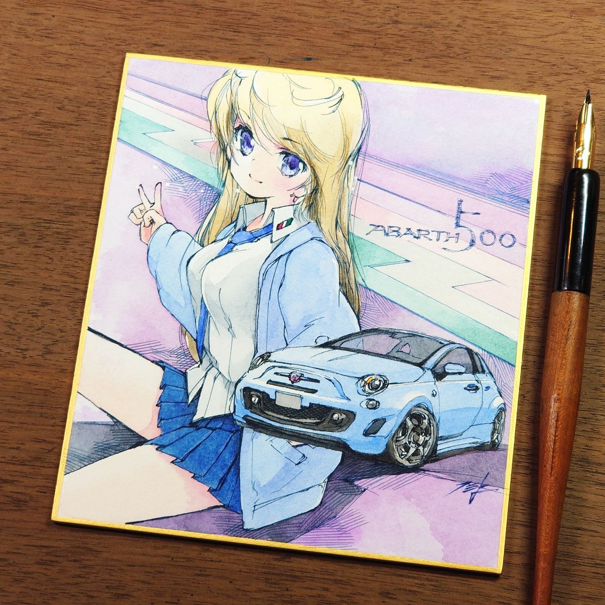 ご依頼いただきました、ABARTH500と擬人化絵をご紹介。(1/4色紙、水彩)小さいのにグラマラス、さらにおしゃれ!そんな印象の娘です。ご依頼ありがとうございました! #車擬人化 pic.x.com/P1cwpsTmmC