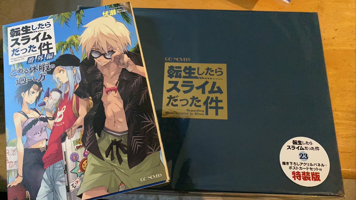 買ってまいりました転スラ23巻 特装版がハードカバー2冊分のデカさで渡された時ビックリした 実は前巻読んでなかったので落ち着き次第読みます #転生したらスライムだった件 #転スラ完結 pic.x.com/PbXdV5zaHO