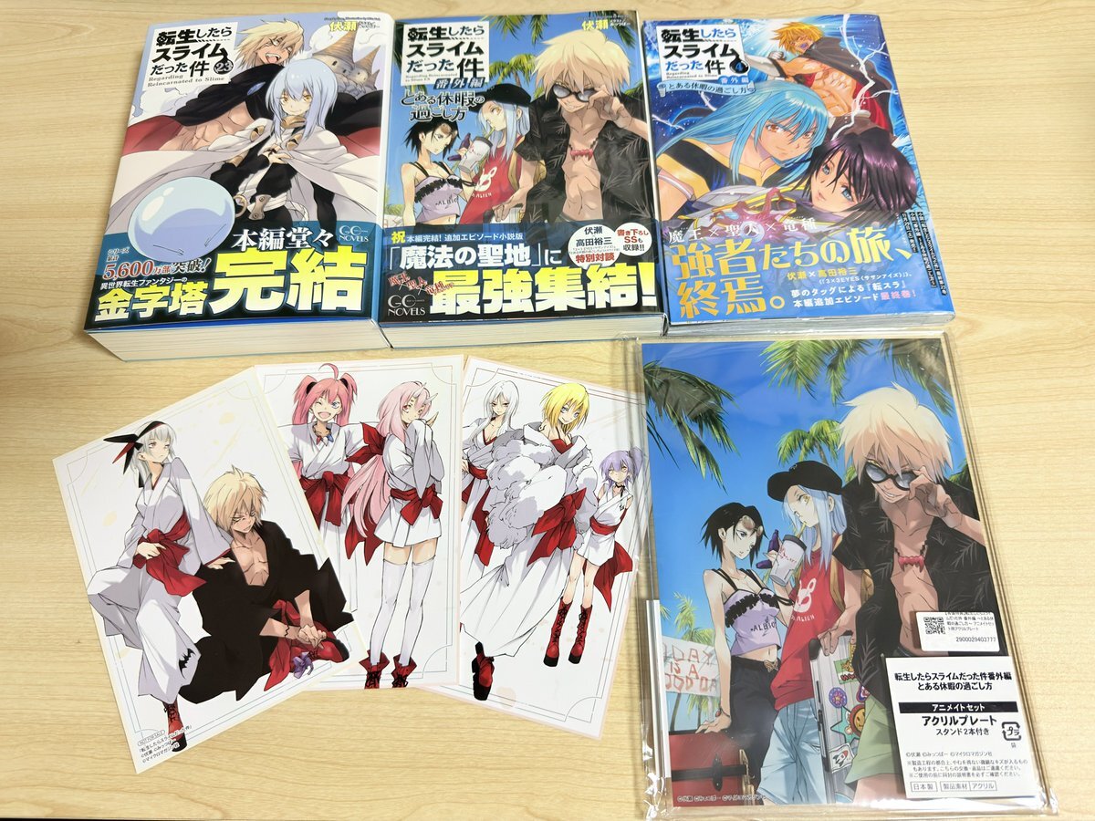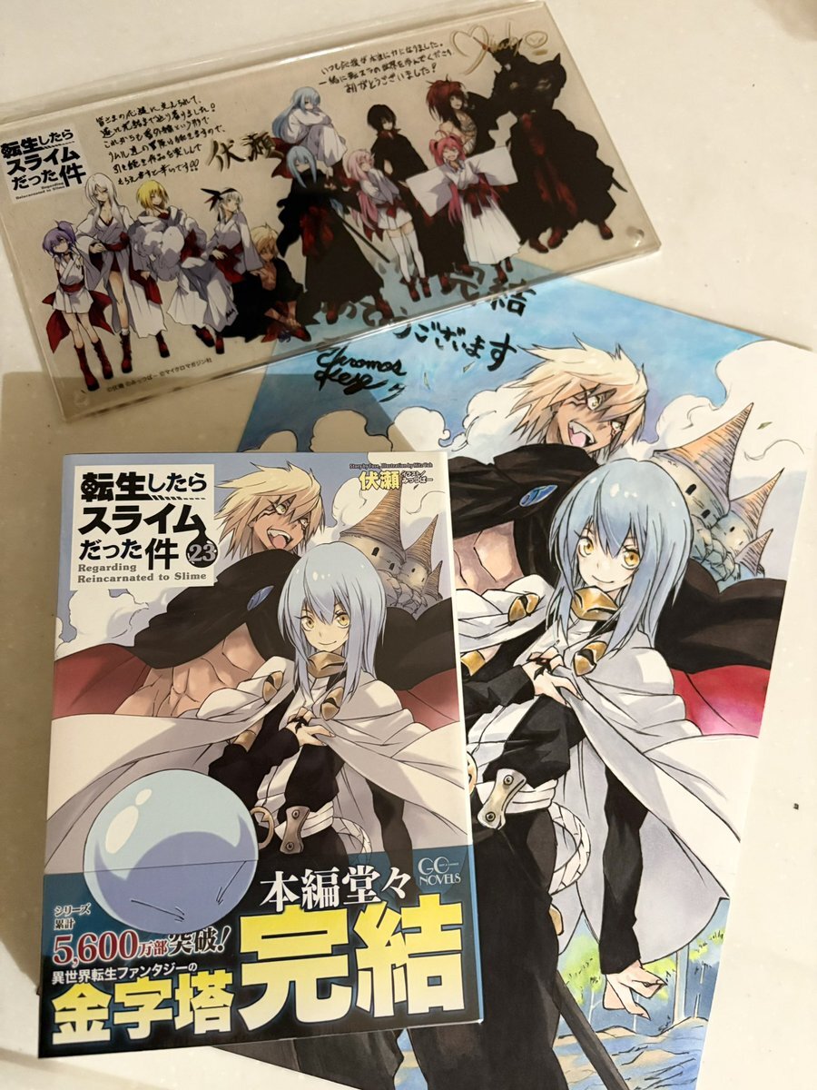 転スラ小説最終巻(通常版)と、とある休日の過ごし方の小説(アニメイトセット)とコミック最終巻🩵 直筆サイン入りのリバーシブルカードは当たらず…🥲 #転生したらスライムだった件 #転スラ完結 #転スラ #tensura #転スラ好きと繋がりたい pic.x.com/xhUKMoZQoK